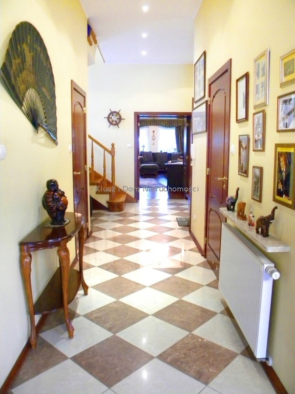 Podłogi wyłożone są drewnem egzotycznym oraz gresem w przypadku łazienek. W domu zainstalowana jest instalacja alarmowa. Wolnostojący garaż znajduje się przed domem dzięki czemu dom jest ukryty od ulicy. Pięknie zagospodarowany ogród, z oczkiem wodnym.