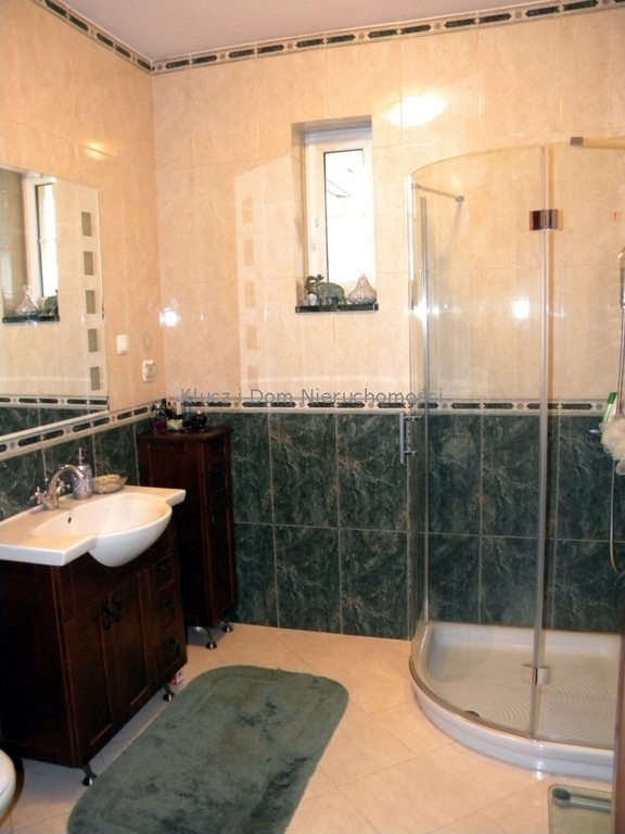 Powierzchnia domu to 300m2. Na parter o powierzchni 144 m2 składają się kuchnia z jadalnią, salon, łazienka, pomieszczenie gospodarcze, hol. Bardzo duża kuchnia połączona z jadalnią - 47m2, z jadalni i kuchni wyjście na taras i do ogrodu. Wysokie, jasne wnętrze. Salon o powierzchni 57m2,- wysokość ok. 4m., bardzo reprezentacyjne pomieszczenie, możliwość podłączenia kominka. Łazienka - 5 m2. Na piętro prowadzą schody z litego drewna gdzie znajdują się 2 sypialnie o powierzchni ponad 20m2 każda (1 sypialnia z garderobą), przestronna łazienka 12m2. Z sypialni oraz z korytarza wyjście na piękny duży taras z widokiem na ogród. Poddasze to powierzchnia ok. 80m2, do własnej aranżacji, w tej chwili open space (zrobione okna, wylewki, kartongipsy oraz elektryka).