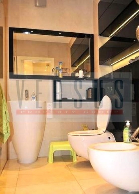 Wszystkie łazienki posiadają m.in. natrysk, wannę, klozet, bidet, ogromne panoramiczne lustra, oraz podświetlane marmury;