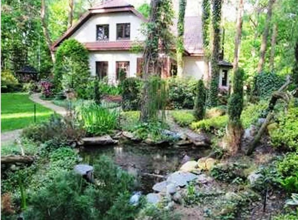 Ogród przepięknie zagospodarowany stanowi nastrój i klimat tego miejsca, krzewy kwitnące (azalie, rododendrony) oraz starodrzew sosnowy, dębowy i brzozowy tworzą unikatową całość ze świetnie utrzymanym trawnikiem. W ogrodzie znajduje się stylowa drewniana altana, tzw bacówka, z miejscem do grillowania, w pobliżu oczko wodne ozdobione bujną roślinnością.