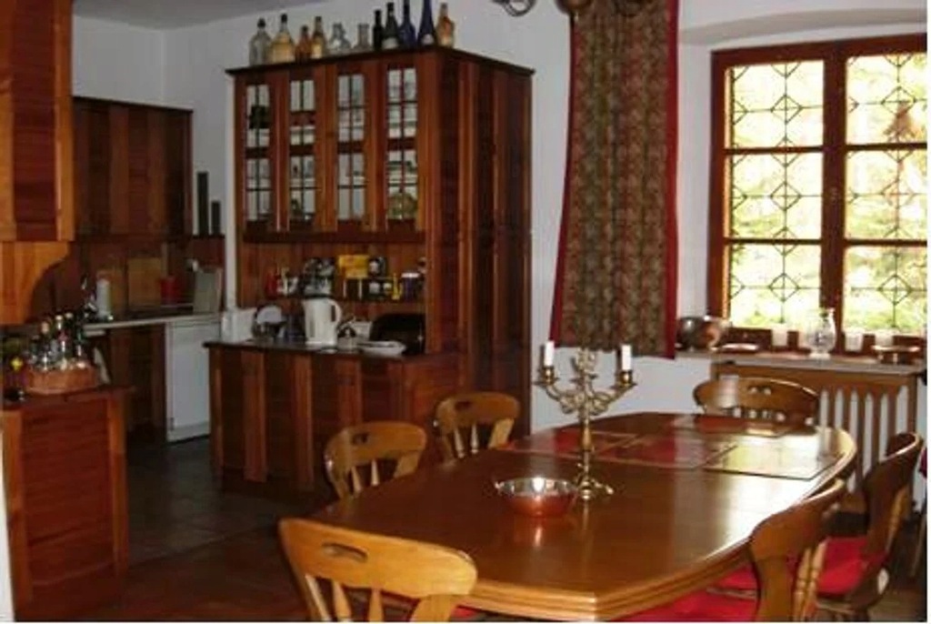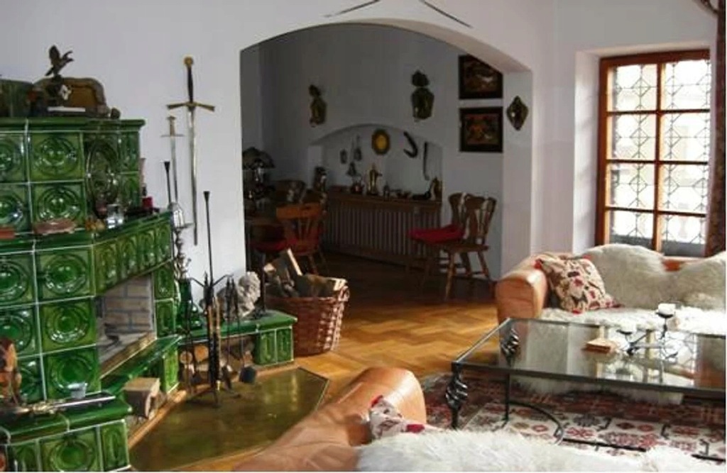 Klasyczny styl, zbudowany z solidnych i jakościowych materiałów: cegła, kamień, drewno i ceramika. Okna drewniane, parkiety dębowe, kominek/piec kaflowy. Kuchnie i łazienki w pełni wyposażone, możliwość pozostawienia wyposażenia i umeblowania całego domu.