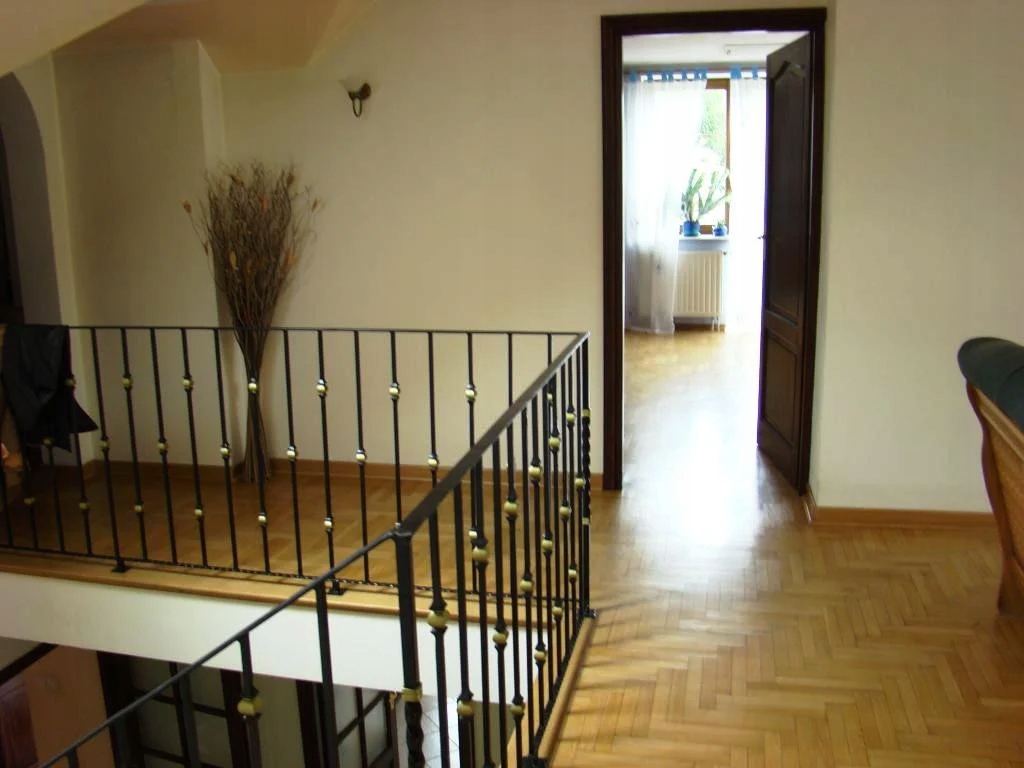 Wolnostojący dom jednorodzinny o wysokim standardzie wykończenia położony jest w cichej i zadrzewionej części Piaseczna. Budynek idealnie usytuowany względem stron świata. Działka o powierzchni 800m 2 z wypielęgnowaną zielenią. Powierzchnia użytkowa budynku wynosi 184 m2 , zaś całkowita 328 m2. Wszystkie ściany wykonane są z ceramiki (cegła kratówka); zewnętrzne trójwarstwowe z ociepleniem wewnątrz warstw. Wykończenie ścian w tynku mineralnym oraz dodatkowo na powierzchniach wewnętrznych wykonana gładź gipsowa. Stolarka drzwiowa wykonana jest z drewna sosnowego, zaś okienna z mahoniu meranti, ze szprosami wewnątrzszybowymi. Posadzki drewniane z klepki dębowej oraz z terakoty. Budynek monitorowany, wyposażony w instalację alarmową. Na parterze znajduje się otwarty i połączony z kuchnią oraz jadalnią salon, gabinet, mała łazienka, garderoba, kotłownia z pralnią i spiżarnia. Na piętrze 3 sypialnie, otwarty salonik, duża przestronna łazienka oraz pomieszczenie rekreacyjne. Garaż dwustanowiskowy z bramą uchylną sterowaną elektronicznie. Stalowa kuta brama wjazdowa wyposażona w siłownik oraz sterowanie. Podjazd do garażu oraz chodniki wykonane z kostki granitowej. Ulica przy której usytuowany jest budynek została gruntowanie wyremontowane oraz wyposażona w chodniki i ścieżki rowerowe.