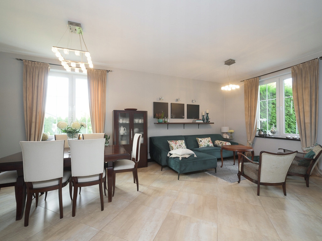 Ten wyjątkowy dom został wybudowany w 2006 r. na w pełni zagospodarowanej działce o powierzchni 1150 m2. Nieruchomość została urządzona w niezwykle funkcjonalny sposób, z dbałością o najmniejsze detale.