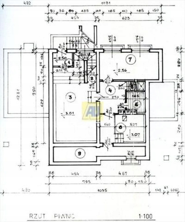 PIWNICE: pokój 34m2, przedsionek 9m2, pralnia i suszarnia 18m2, kotłownia 13m2, piwnica magazynowa 13m2.
