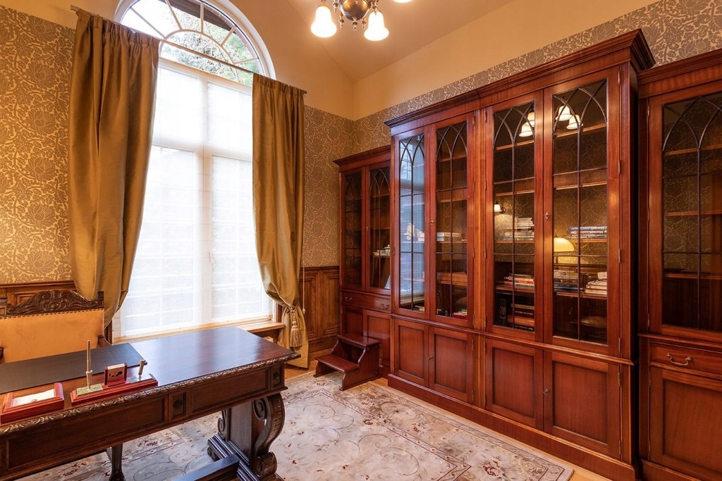 Ale wróćmy na chwilę do wiatrołapu ,po lewej mamy gabinet z angielską biblioteczką ,dalej jest największa sypialna z osobną komfortową łazienką i garderobą.