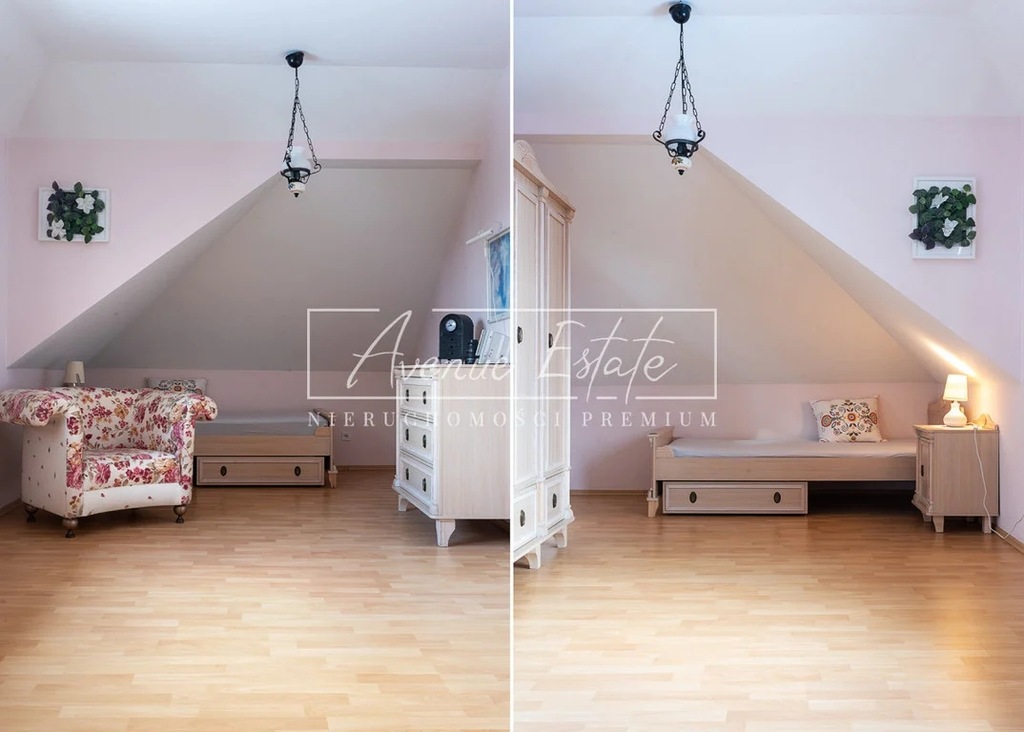 - poddasze (pokoiku nad garażem ok. 37 m2)