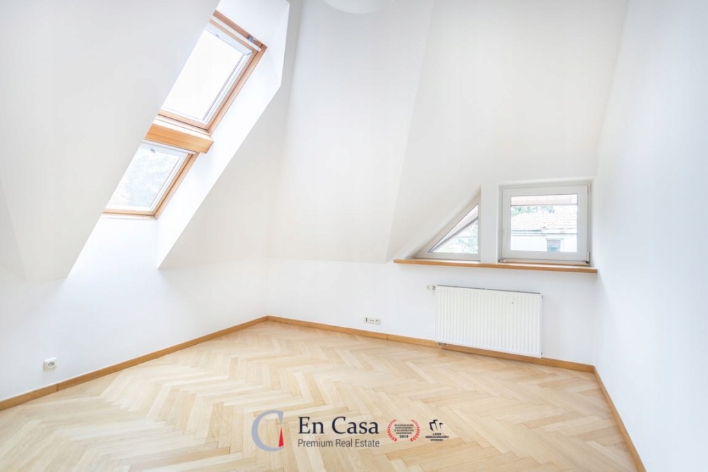 The first floor has 2 bedrooms for which the bathroom is intended. In one of them an additional entrance to the developed attic, which can be a unique asset for a teenager. In addition, on this level there is a third bedroom with a private bathroom and wardrobe. From this bedroom we also have a passage to a room that can be, for example, a study.