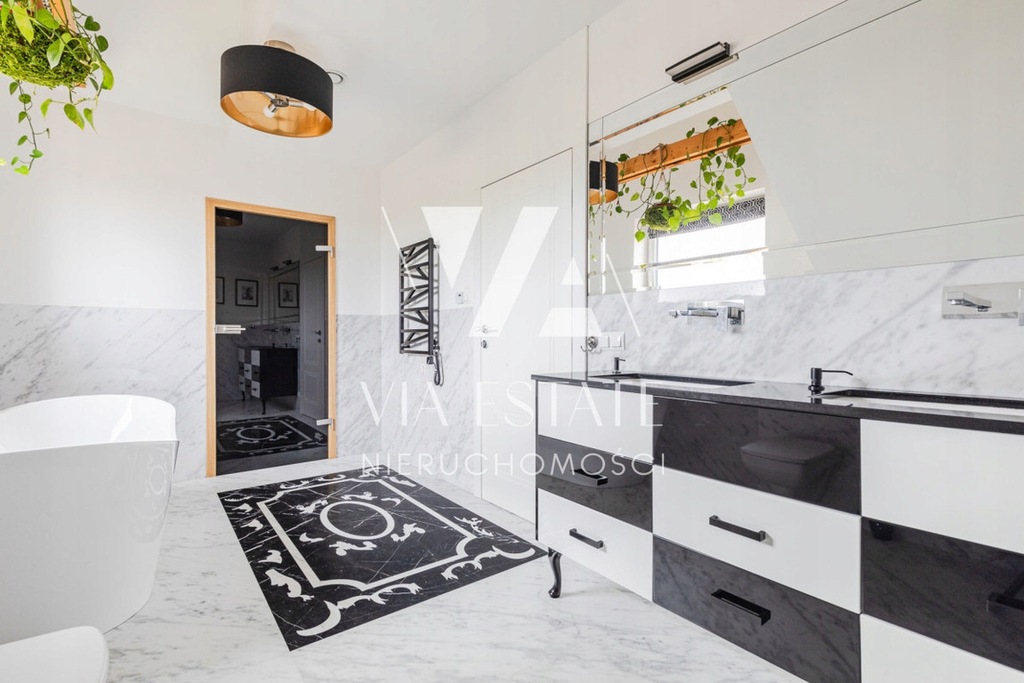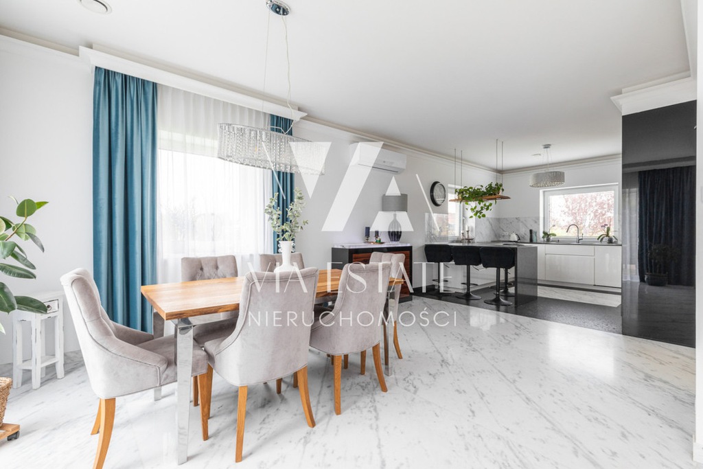Atutem nieruchomości jest wysokiej jakości wykończenie naturalnymi materiałami, granitowe blaty kuchenne, podłogi w salonie i kuchni marmurowe.
