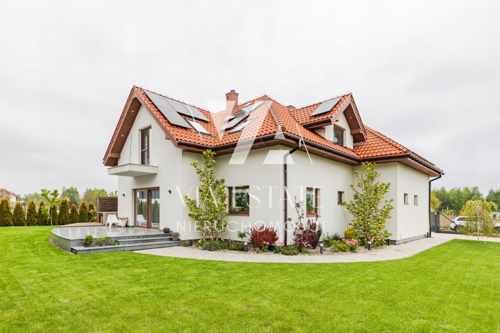 Nieruchomość posiada liczne udogodnienia oraz wszystkie media, dodatkowo wyposażona w klimatyzację, panele fotowoltaiczne gwarantujące bezkosztowe korzystanie z prądu, klimatyzację, rekuperację, stację uzdatniana wody, automatyczne podlewanie ogrodu oraz automatyczną kosiarkę bezobsługowo dbającą o trawę w całym ogrodzie.