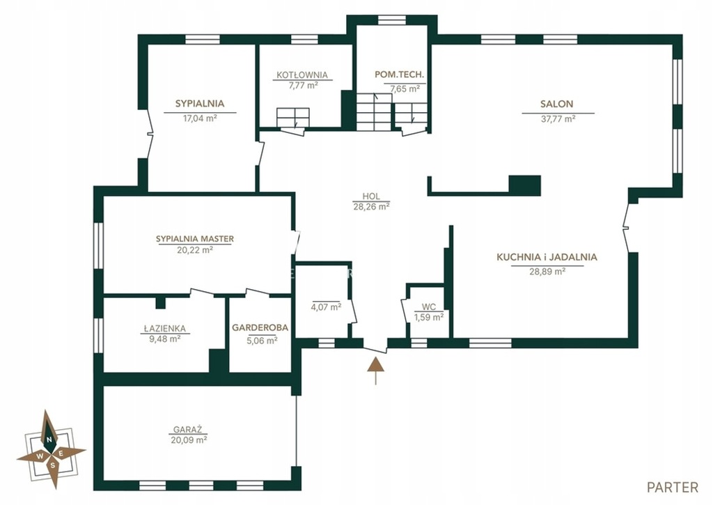 W bryle budynku usytuowany został jedno-stanowiskowy garaż z nową automatyczną bramą segmentową Horemann. Na podjeździe ( ponad 200m2) można zaparkować dodatkowo nawet kilkanaście pojazdów.