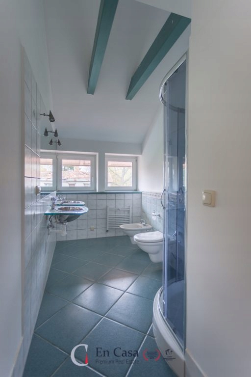 The first floor has 2 bedrooms for which the bathroom is intended. In one of them an additional entrance to the developed attic, which can be a unique asset for a teenager. In addition, on this level there is a third bedroom with a private bathroom and wardrobe. From this bedroom we also have a passage to a room that can be, for example, a study.