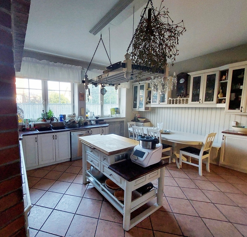 > 7 pokoi, salon z kuchnią i jadalnią, 2 łazienki, wc, spiżarnia, ogród zimowy