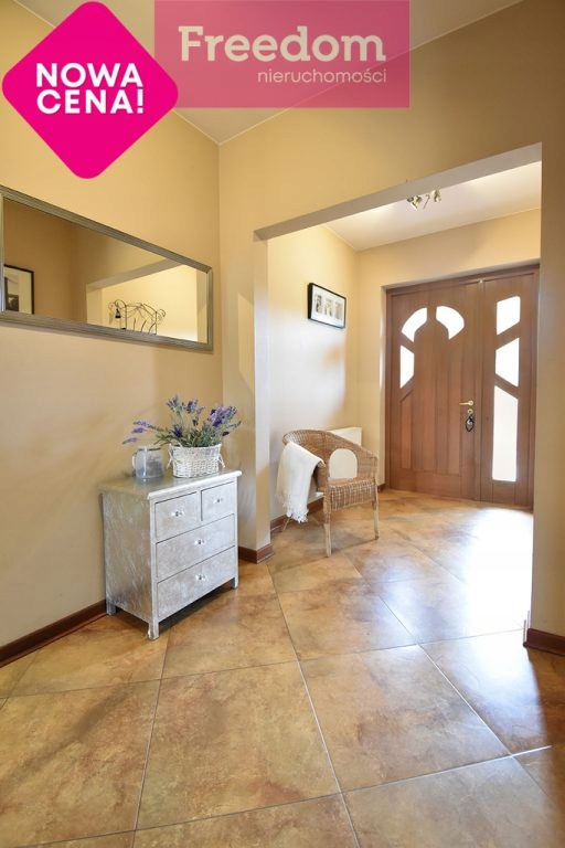 Dom sprzedawany jest wraz całym wyposażeniem, które idealne komponuje się z jego wnętrzem i nadaje mu szykownej wymowy. Meble są o wysokim standardzie i wraz z dekoracjami i detalami takimi jak lampy czy żyrandol nawiązują do stylu glamour. W sufitach zainstalowane jest oświetlenie LED oraz nagłośnienie muzyczne dla całego domu. Jest to prawdziwa okazja w tych okolicach jeśli chodzi o domy jednorodzinne.