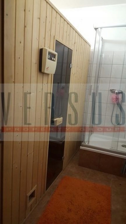dwa garaże z oddzielnymi wjazdami, dodatkowo 7 pomieszczeń (spiżarnia x 2, pralnia, Wc, pokój rozrywek, sauna z łazienką, piec,)