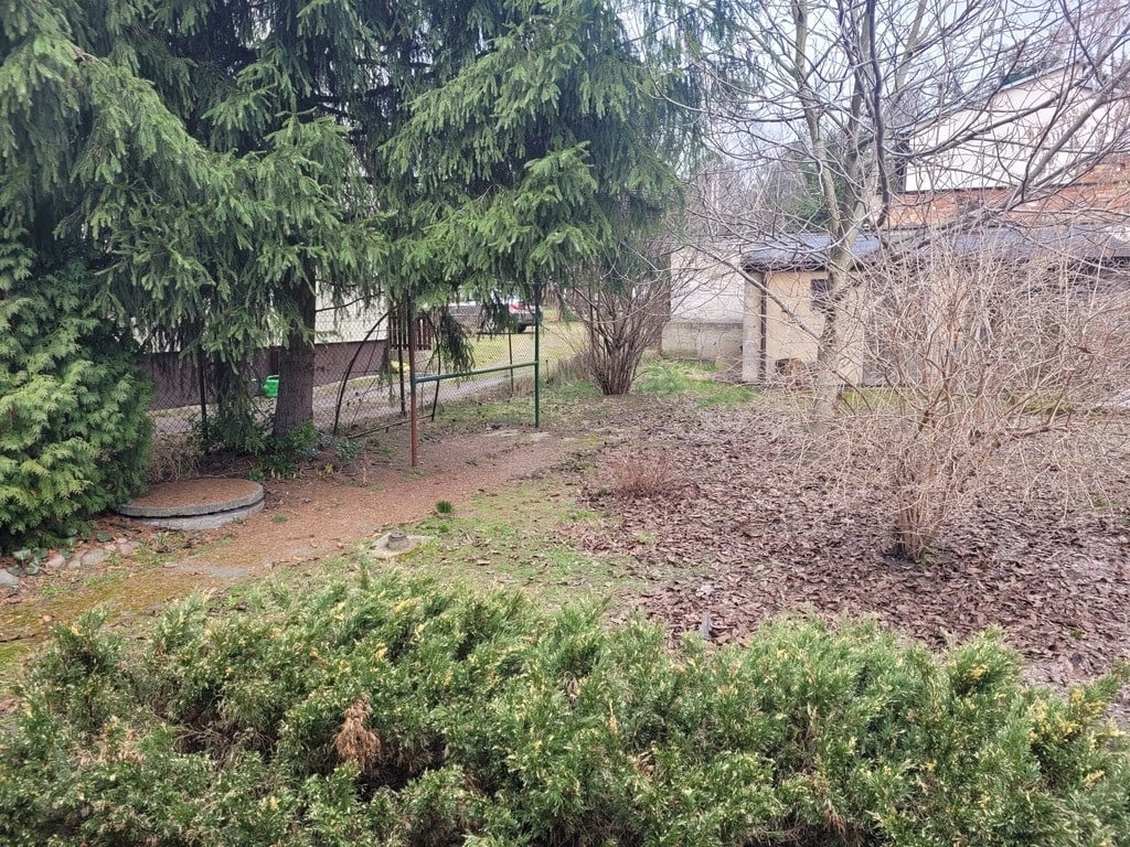 Działka o powierzchni 507 m2 z domem w zabudowie bliźniaczej o powierzchni parteru około 65 m2 i możliwością zagospodarowania poddasza. Na tyłach działki znajduje się jeszcze jeden budynek posadowiony w północnej granicy działki, naniesiony na mapie.