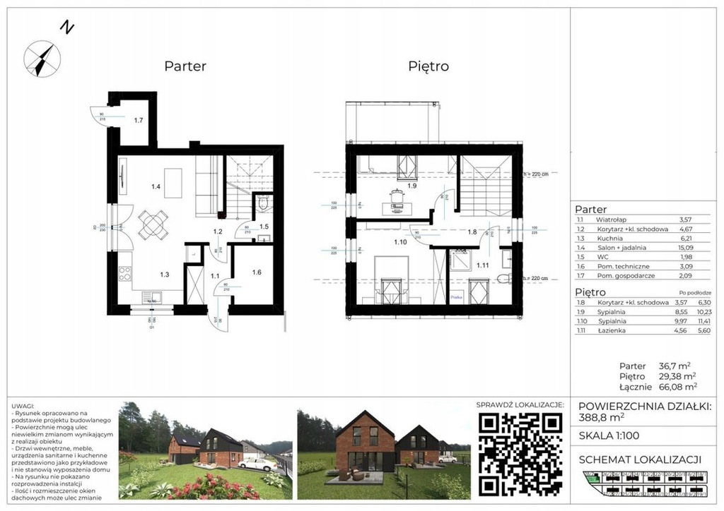 - Pow. działki: 388.80 m²