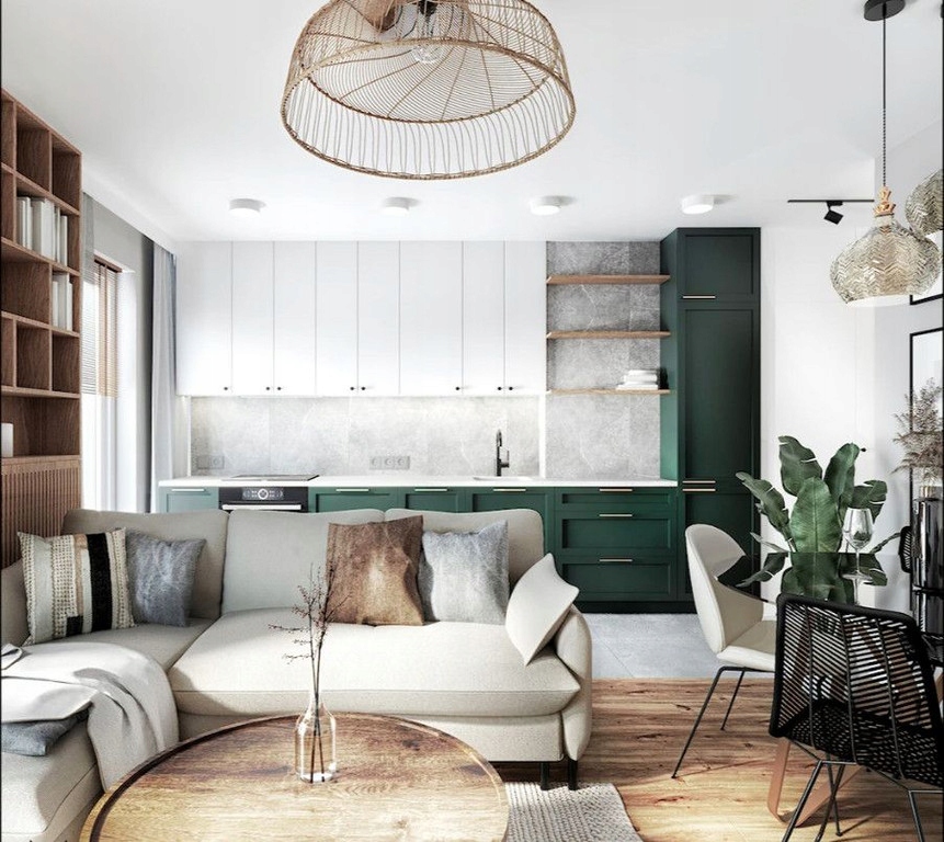 Część dzienna pięknie doświetlona przez cały dzień przez duże przeszklenia z ekspozycją na wschód, południe i zachód.