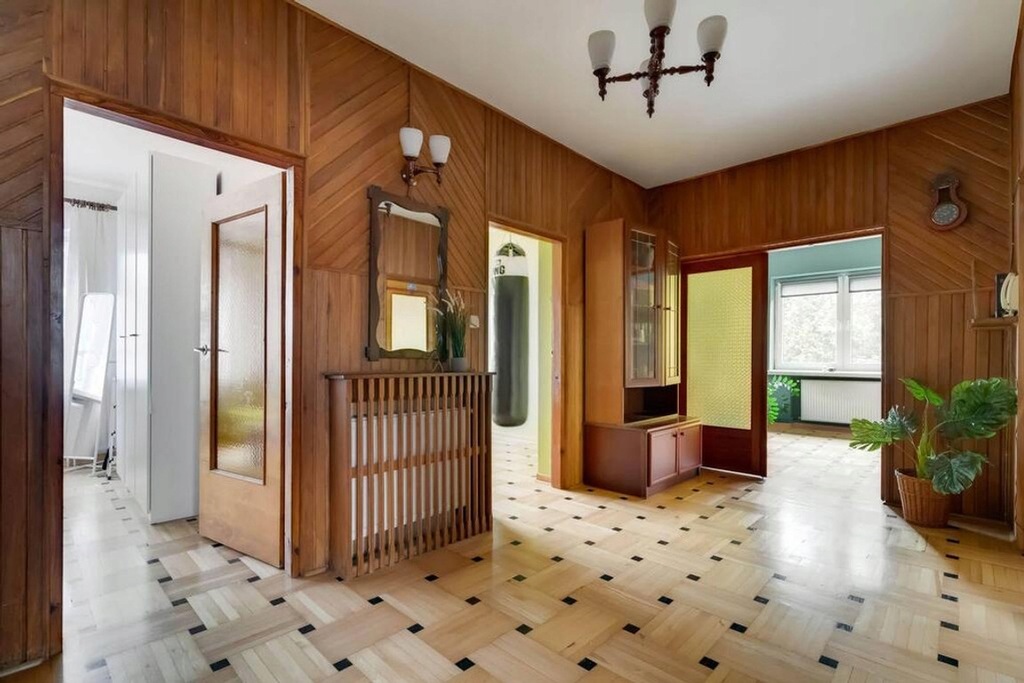 Na podłogach na piętrze oraz na korytarzu znajduje się odrestaurowany parkiet, w łazience jest terakota.