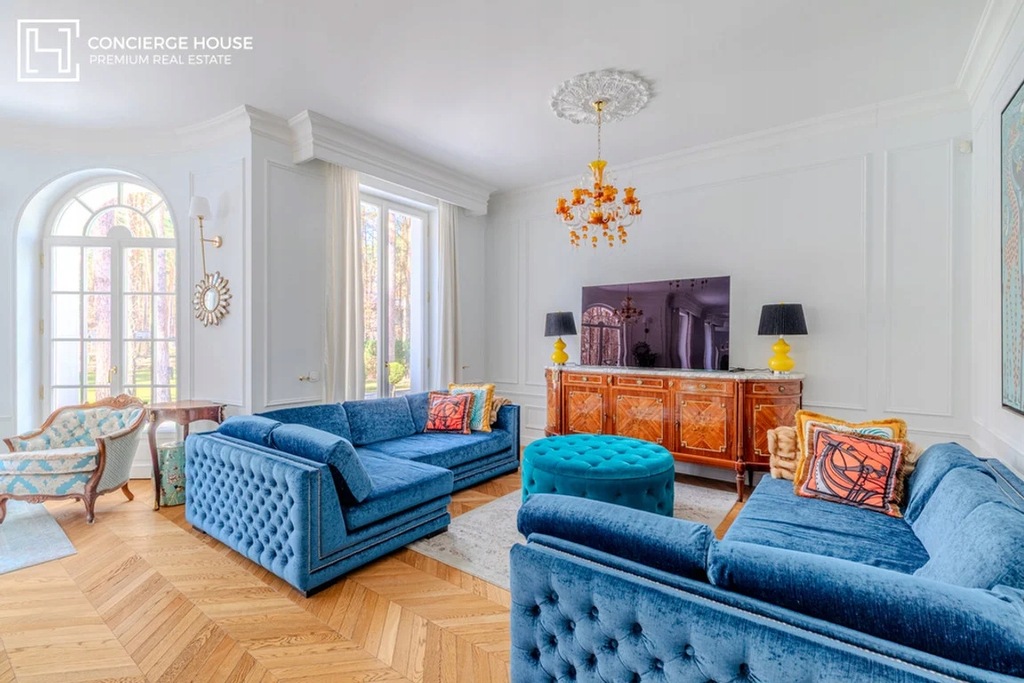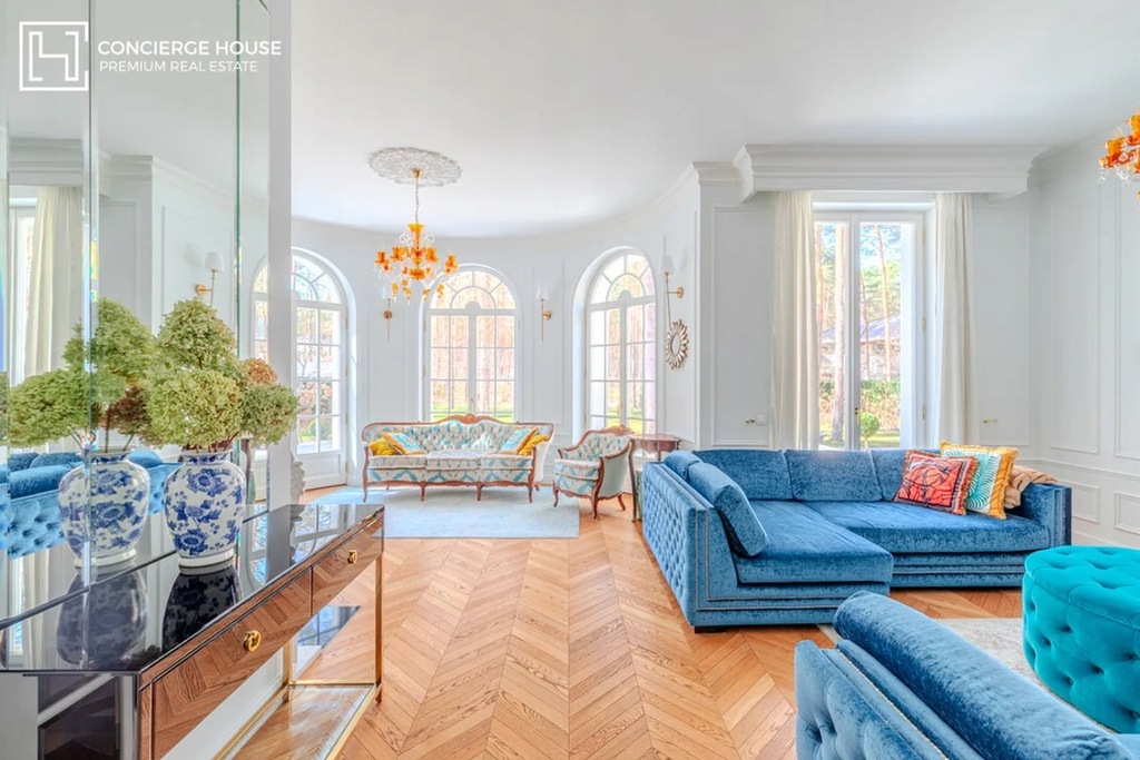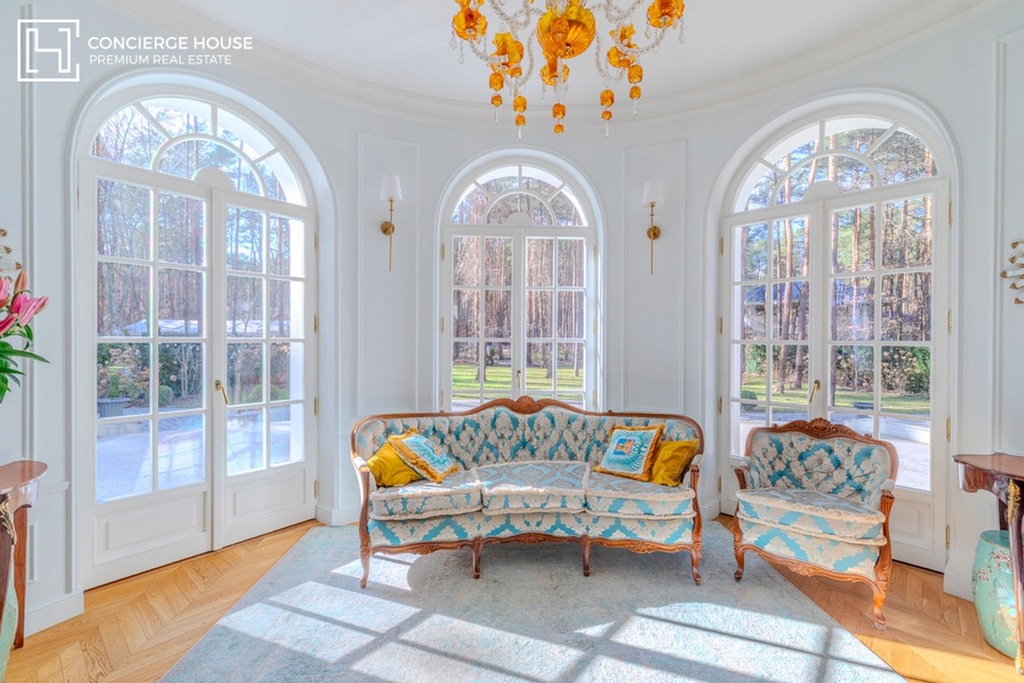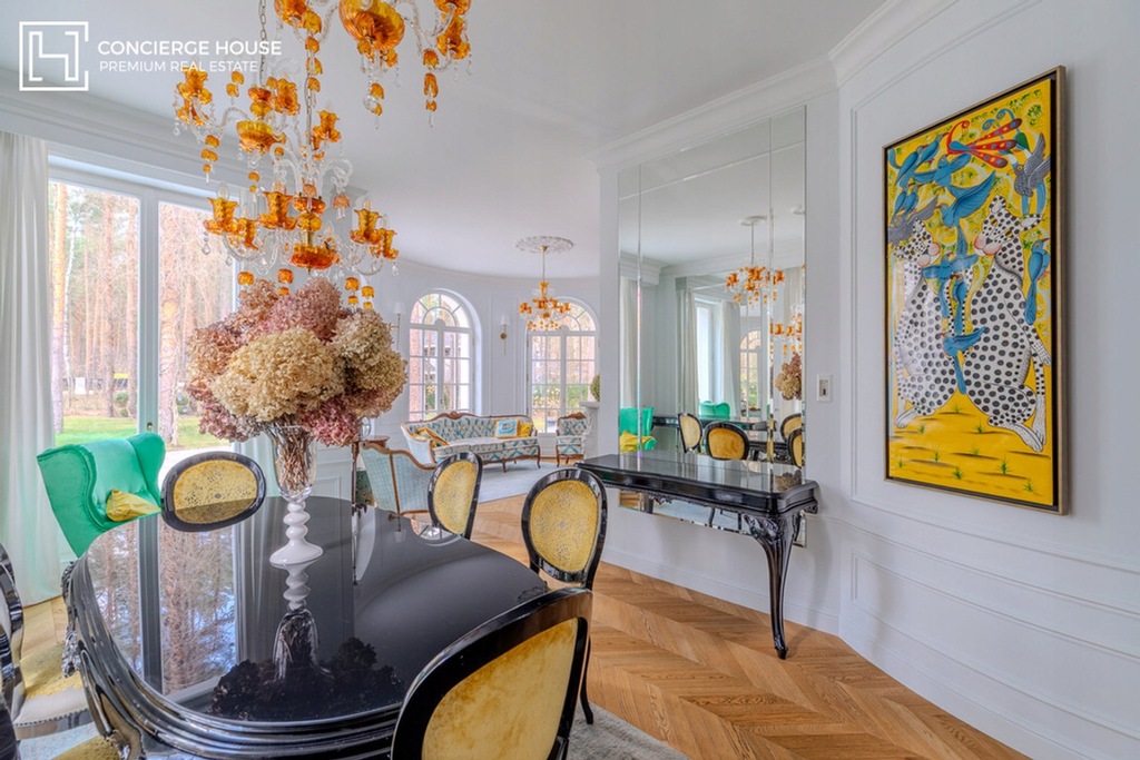 Majestatyczna rezydencja inspirowana francuskim stylem czeka, by stać się Twoim azylem luksusu. Zaledwie pół godziny od tętniącego życiem centrum Warszawy. Wyobraź sobie poranną kawę na tarasie skąpanym we wschodzącym słońcu... Wieczorne przyjęcia w eleganckim salonie z widokiem na zachód słońca przeświecający przez korony drzew. To nie sen - to codzienność w tej wyjątkowej posiadłości.