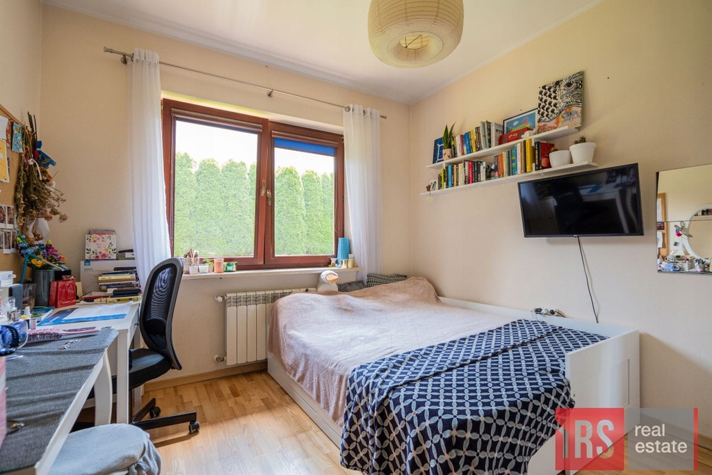 W dalszej części znajdują się 4 sypialnie pomiędzy nimi jest łazienka. Ekspozycja pokoi na północ. Na całej długości korytarza szafa wnękowa W części domu ogrzewanie podłogowe. Dodatkowo jest poddasze z dwoma oknami połaciowymi do własnej aranżacji.