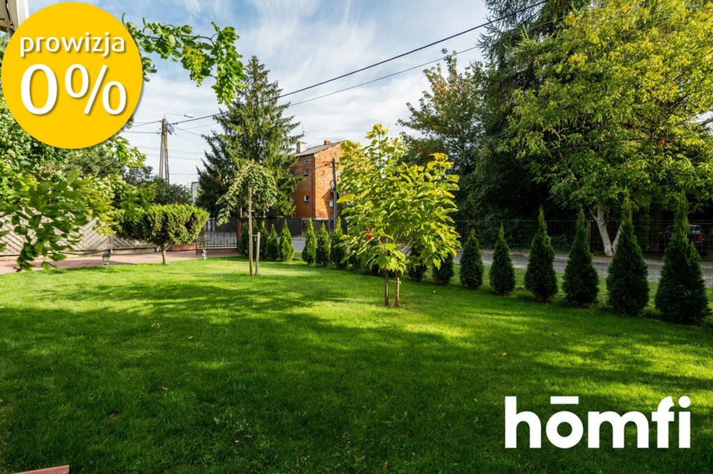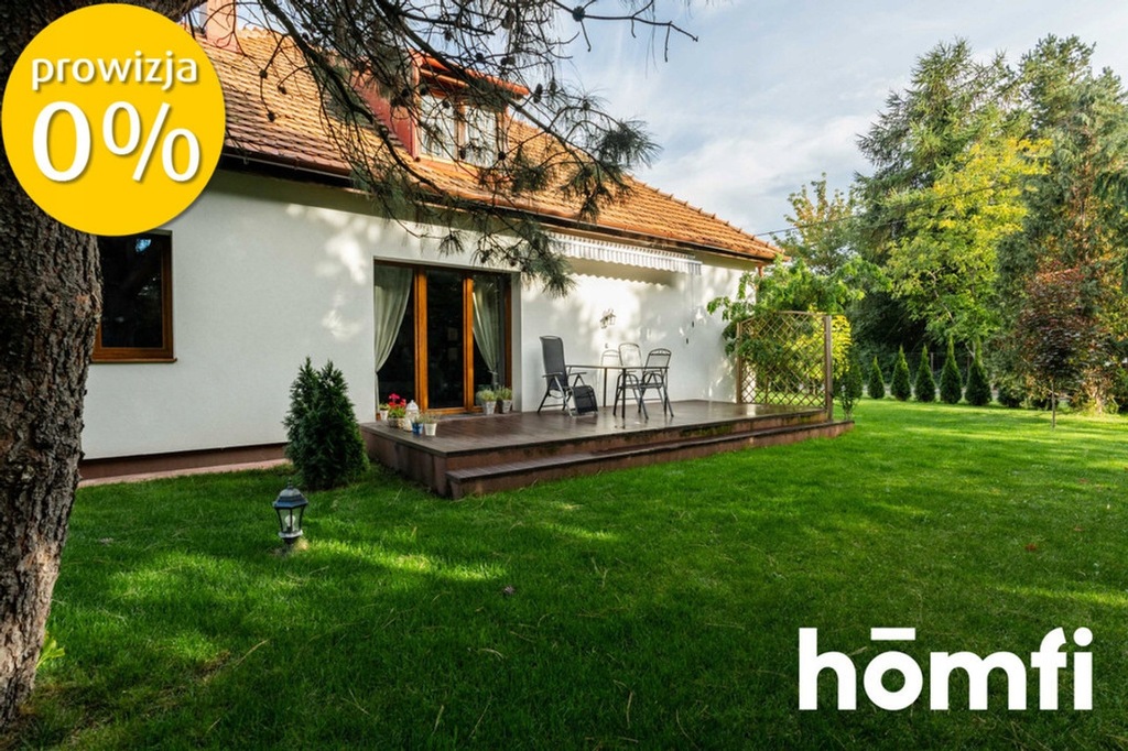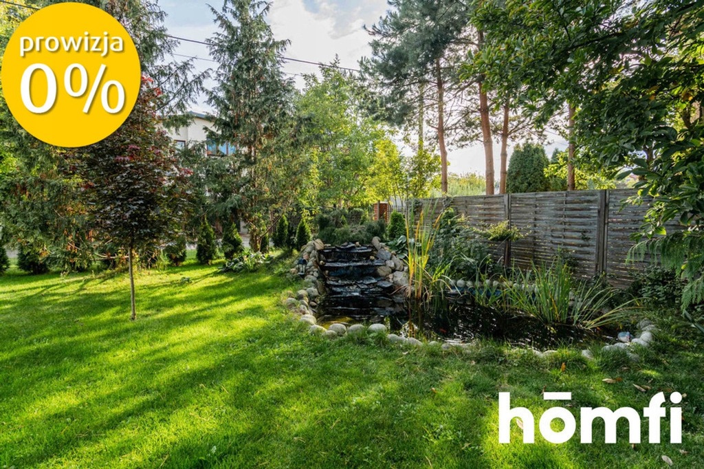 Na szczególną uwagę zasługuje działka, na której postawiona jest nieruchomość. Urokliwe wysokie sosny oraz tuje okalające nieruchomość dają nie tylko poczucie prywatności, ale także schronienie przed ciepłem w letnie dni. Dodatkowo na ternie ogrodu mieści się małe oczko wodne. Szerokość działki to ok. 25m, a jej długość to 32m.