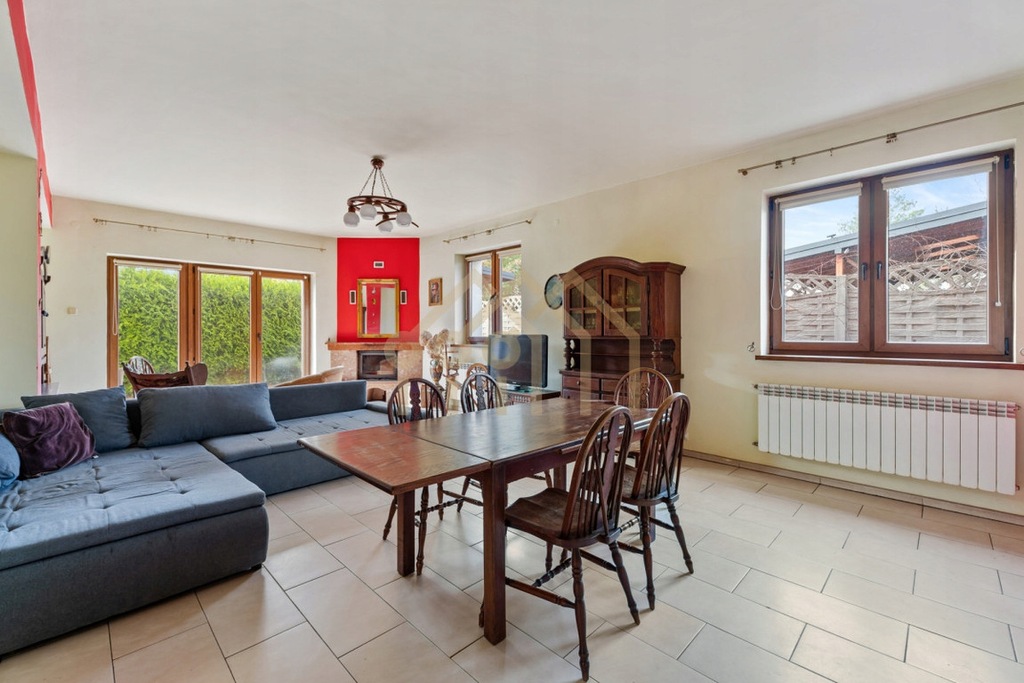 przestronny salon z jadalnią oraz kominkiem - 38,24 m2