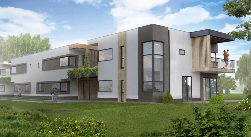 Lokale usytuowane są w nowocześnie i ciekawie zaprojektowanym budynku składającym się z 2 połączonych domów (każdy po 2 lokale mieszkalne) w bardzo dobrej lokalizacji w Piastowie.