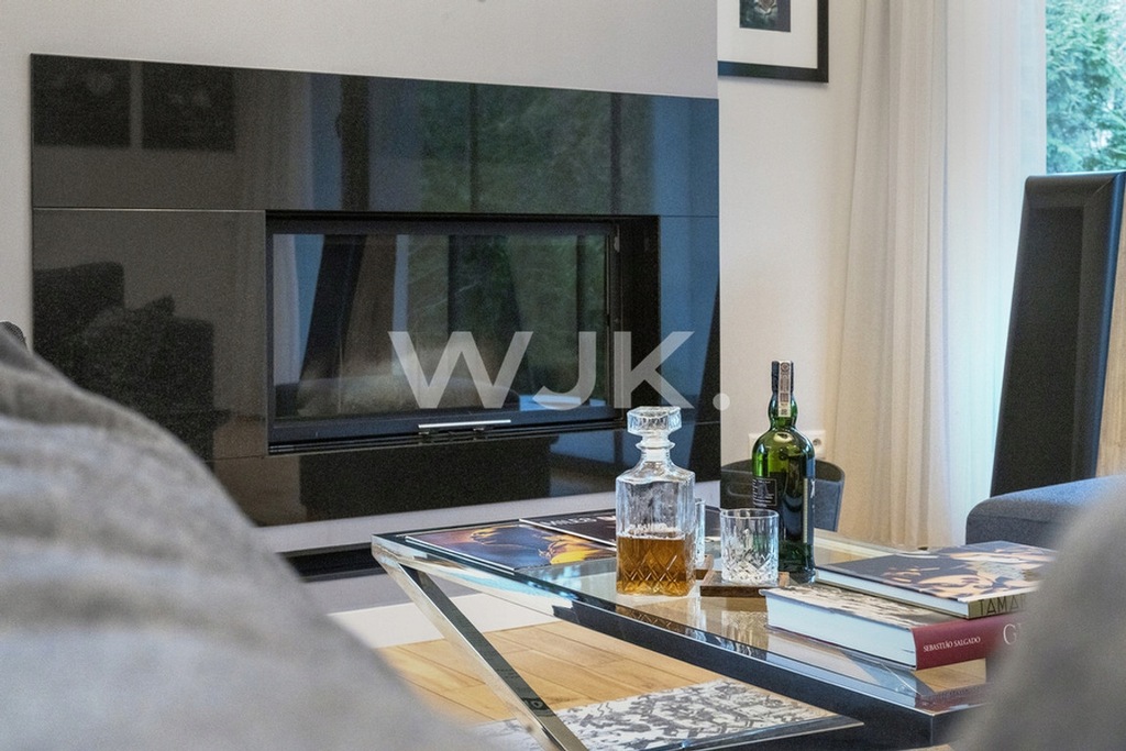 Dom wykończony materiałami wysokiej klasy. Za projekt i wykończenie wnętrz odpowiada znane studio architektoniczne FOROOM. Salon, stanowiący reprezentacyjną część domu, wyróżnia się granitowymi schodami półkowymi oraz podłogą z deski dębowej. Przestrzeń doświetla imponujące sufitowe przeszklenie z południową i wschodnią ekspozycją.