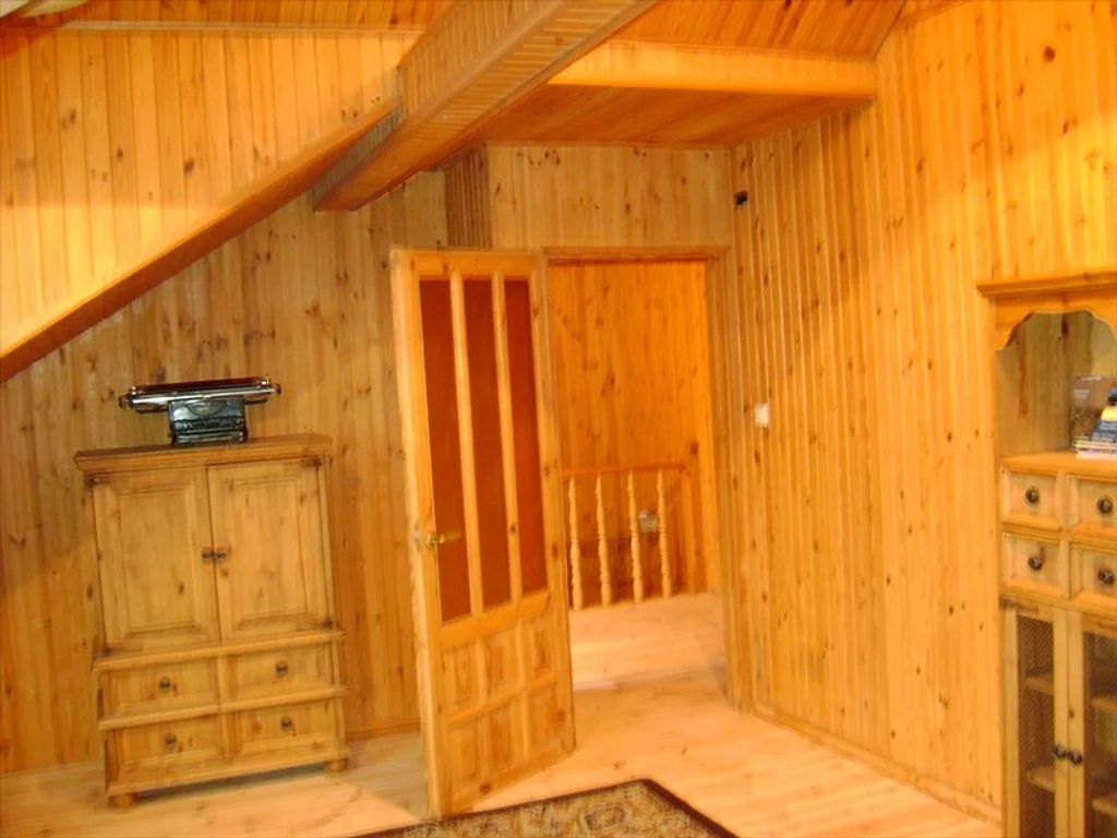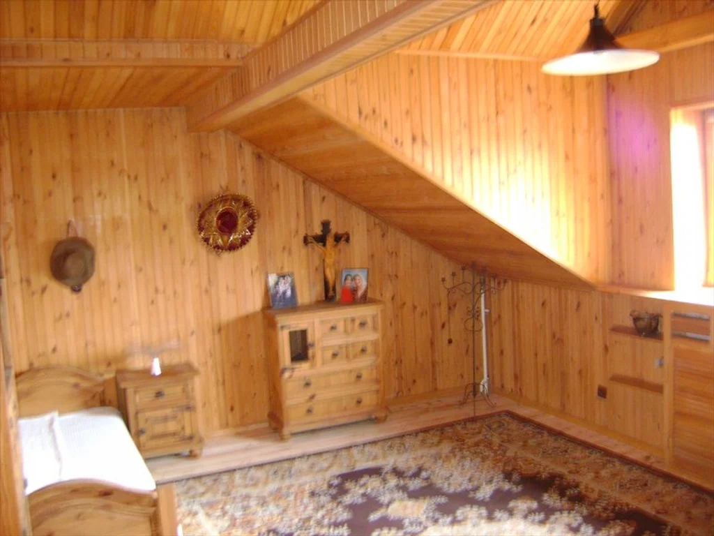 Poddasze (wysokość powyżej 300cm),całe wykończone drewnem: Dwie sypialnie po 21m2, pomieszczenie gospodarcze z możliwością zaaranżowania łazienki i kuchni, na korytarzu okno dachowe i w skosach schowki.