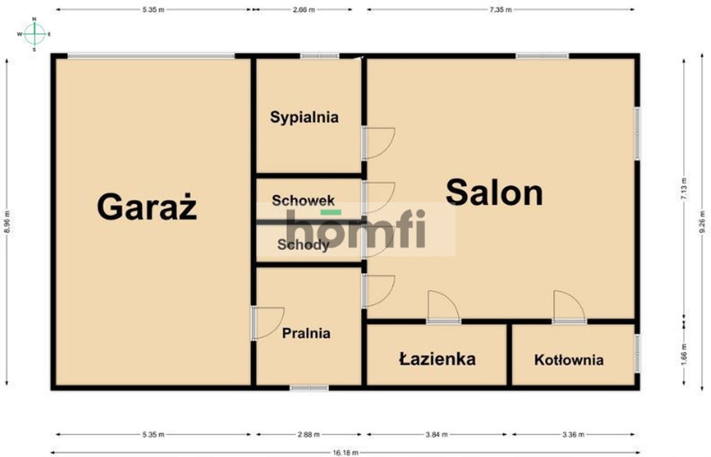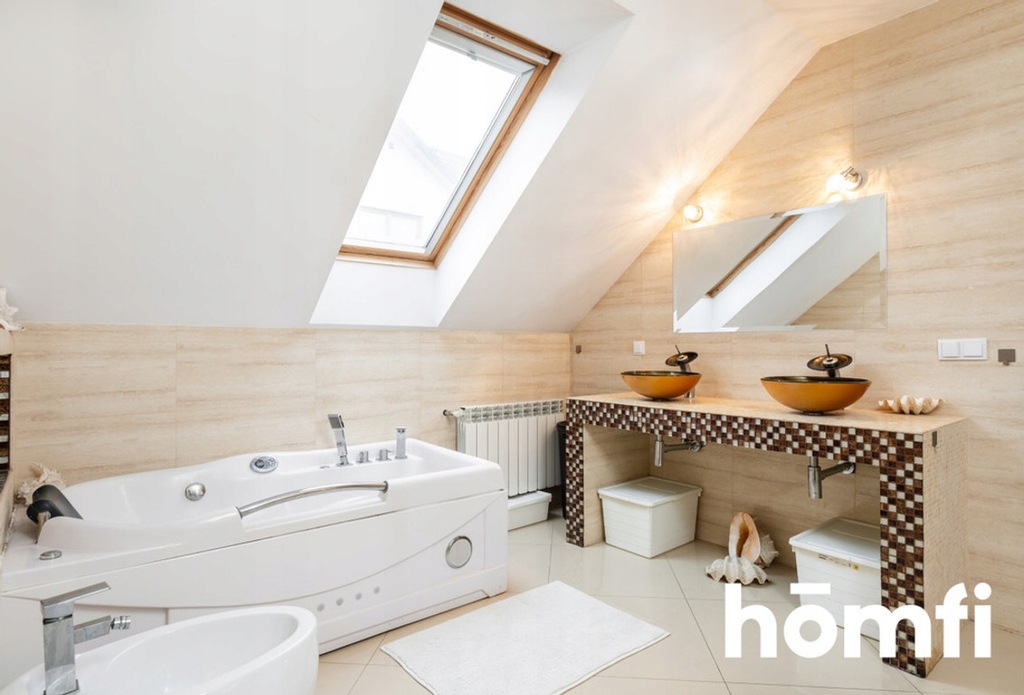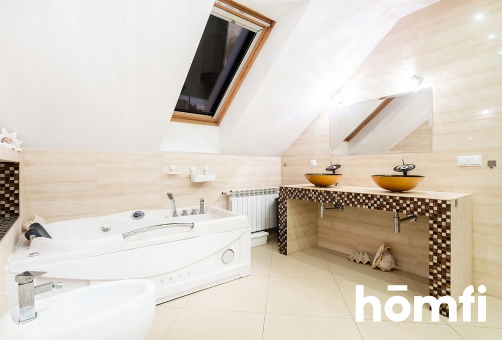 Powierzchnia domu to 350 m2 z dużym garażem o wysokości 5 m.