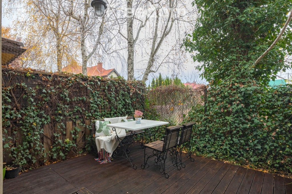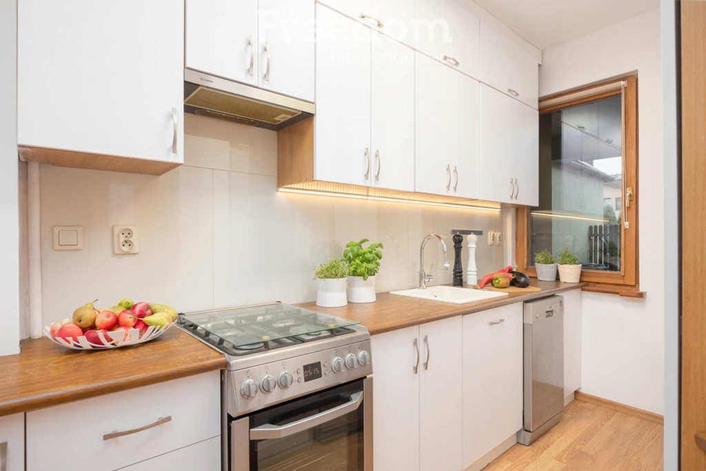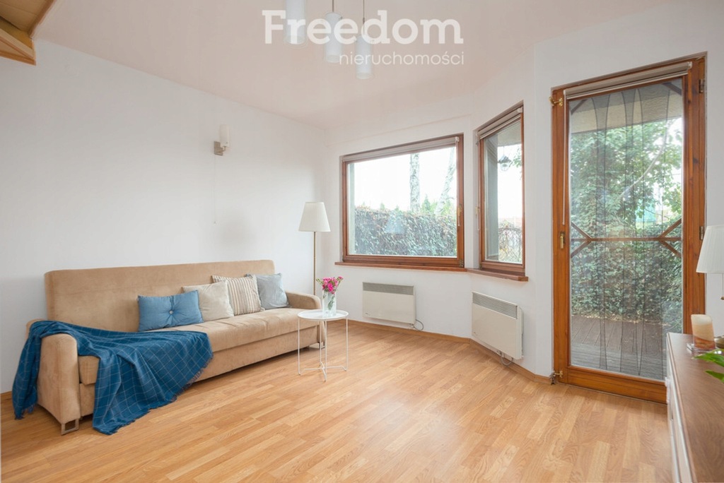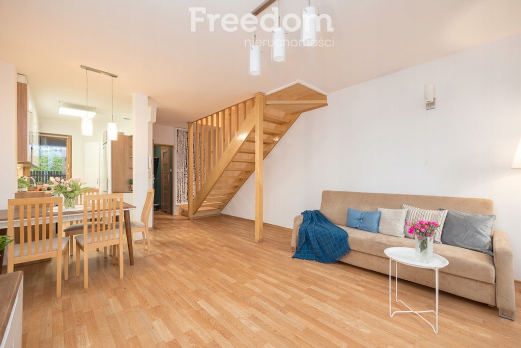 Dwupoziomowy segment bezczynszowy z 1998 roku o wielkości 73 m2 położony na działce o powierzchni 83 m2. Posiada bardzo funkcjonalny rozkład, dzięki czemu daje poczucie komfortu i przestrzeni. Mieszkanie jest słoneczne z ekspozycją na wschód i zachód, a pokoje są duże i ustawne. Na podłogach jest panel imitujący drewno, a w łazience i na górnym tarasie terakota. Ogrzewanie jest elektryczne.
