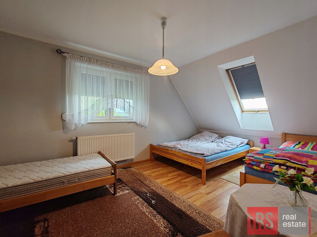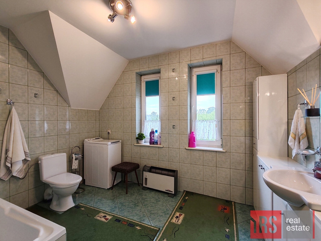 W sercu tego zielonego siedliska stoi dom, który łączy funkcjonalność z pięknem otaczającego krajobrazu. Przestronny salon z dużymi przeszkleniami zaprasza światło i widok do środka. O każdej porze roku masz tu inną panoramę: jesienią złote liście, zimą ciche zaspy, a latem eksplozję zieleni i kwiatów. Nowa klimatyzacja pozwala Ci cieszyć się komfortem niezależnie od pogody - chłodzi w upalne dni, dogrzewa w chłodne wieczory.