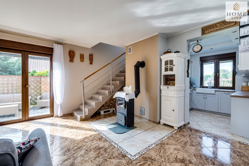 Dom podłączony jest do sieci wodno-kanalizacyjnej. Dodatkowymi udogodnieniami jest alarm oraz rolety zewnętrzne antywłamaniowe. Właściciele starannie dbają o nieruchomość dzięki czemu jest w bardzo dobrym stanie i nadaje się do natychmiastowego zamieszkania.