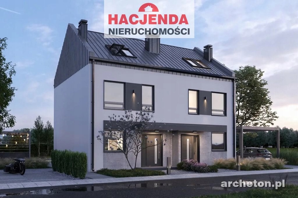 Domy z zabudowie bliźniaczej z miejscem postojowym oraz ogródkami przy ulicy Kresowej.