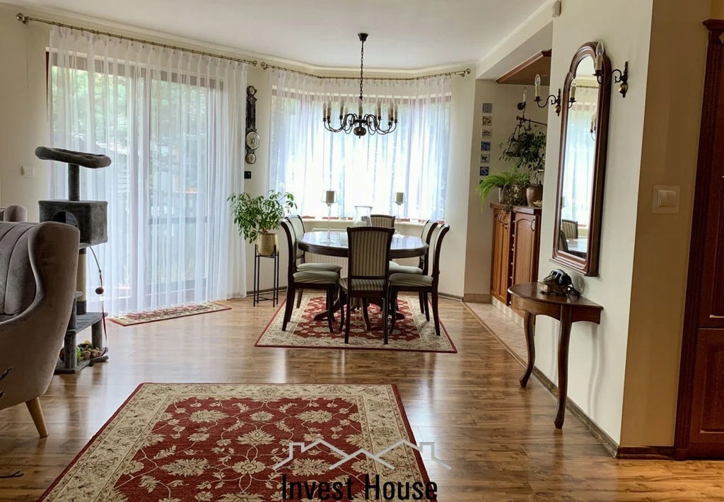 Mnóstwo naturalnego światła ze wszystkich kierunków. Od strony jadalnianej wyjście na taras z zejściem do ogrodu.