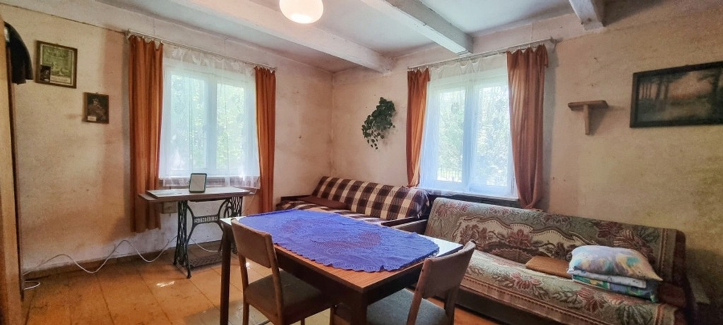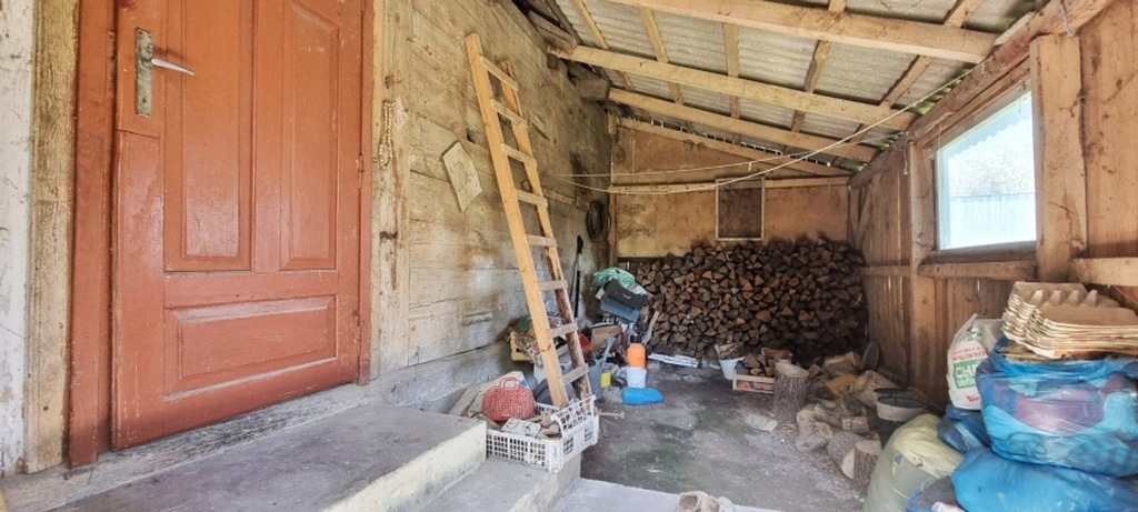 - Nieruchomość składa się z drewnianego domu, pokrytego tynkiem na działce o powierzchni 31 ar (193x16 mb)