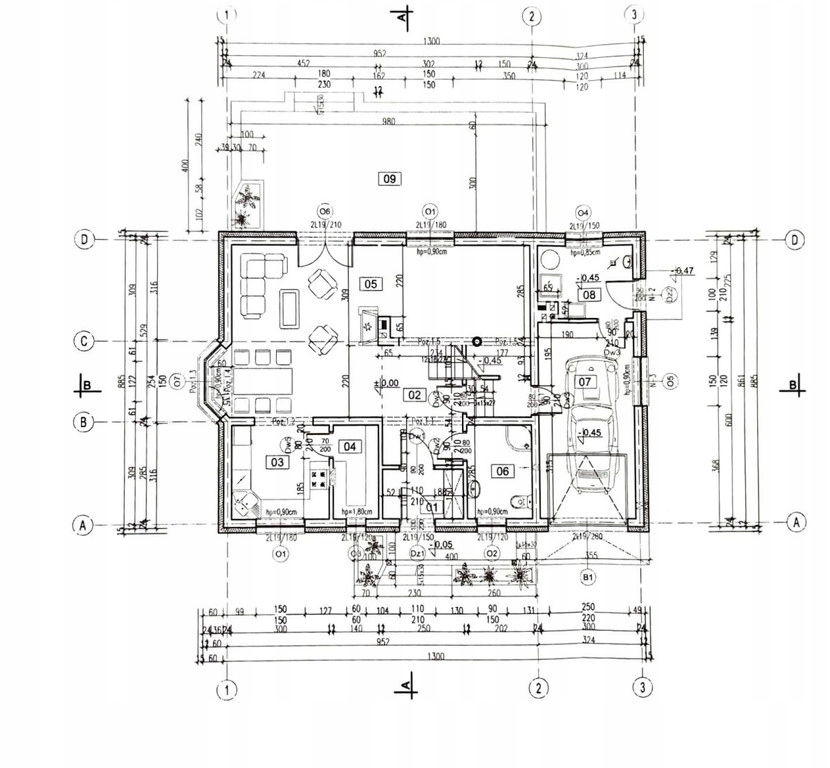 - głębokość posadowienia fundamentów 80cm poniżej poziomu terenu