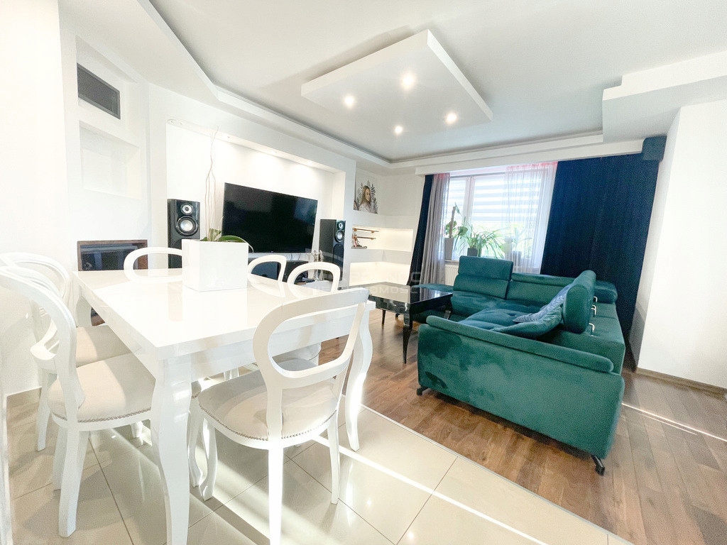 -przestronnego, doświetlonego salonu połączonego z jadalnią, w którym znajduje się kominek