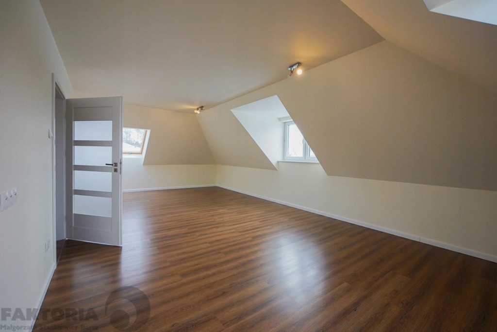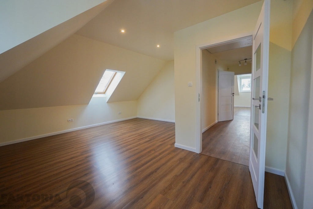 PIĘTRO: 3 sypialnie z m.in. oknami połaciowymi, łazienka 8,5 m2 z wanną, kabina prysznicową, w łazienkach na parterze i na piętrze okna. Niewielkie poddasze nieużytkowe nad I piętrem które może służyć jako magazyn.