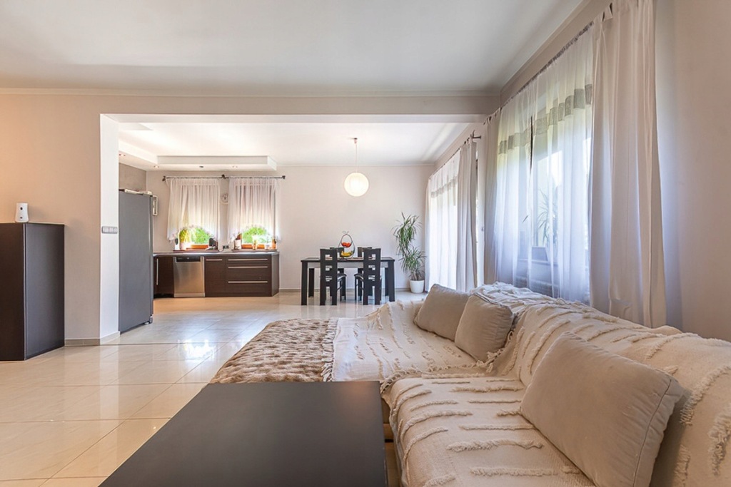 Dom oferuje przestronne i funkcjonalne wnętrza, składające się z pięciu sypialni, co sprawia, że jest idealny dla rodziny szukającej przestrzeni i prywatności. Duży salon z widnym aneksem kuchennym stwarza doskonałe warunki do wspólnych spotkań i relaksu. Nowoczesne wykończenia oraz staranne detale dodają nieruchomości wyjątkowego charakteru.