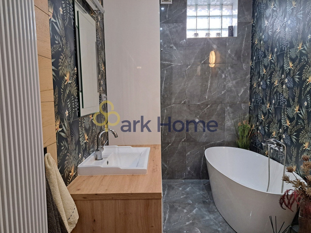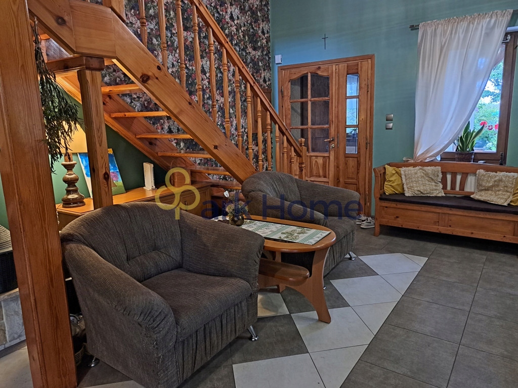 Nieruchomość została solidnie wykończona z dbałością o szczegóły. Na parterze znajduje się przestrzeń dzienna z otwartą kuchnią oraz salonem z wyjściem na taras, natomiast na piętrze zaprojektowano część sypialnianą. Na działce o powierzchni około 1500 m² rosną drzewa owocowe i krzewy, które zapewniają nie tylko estetykę, ale również świeże owoce w sezonie.
