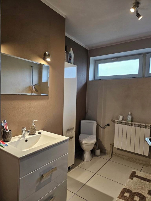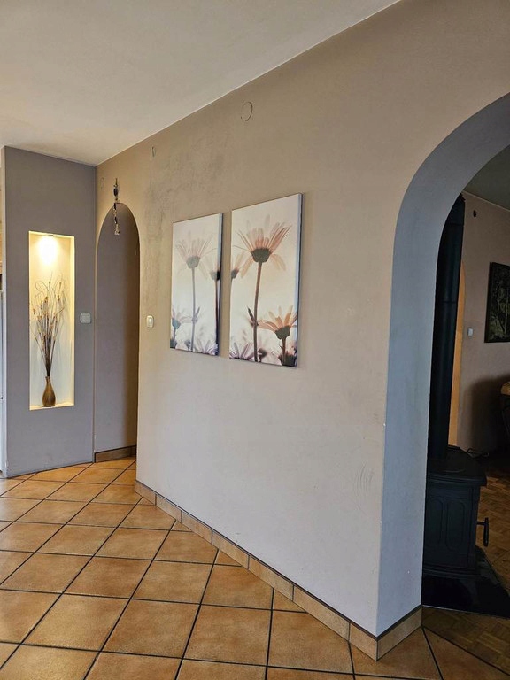 Nieruchomość gruntowa o powierzchni 815m2 zabudowana budynkiem mieszkalnym, jednorodzinnym o powierzchni zabudowy 116 m2 i powierzchni użytkowej 164m2, położona przy ulicy Tęczowej w Sochaczewie, osiedle Karwowo- Gawłów. Budynek mieszkalny podpiwniczony, 2 kondygnacyjny, wybudowany w 2004 roku. Funkcjonalny rozkład pomieszczeń, składający się z parteru; sień - 2,3m2, holl- 9,4m2, WC-1,7m2, pokój, 10,7m2, klatka schodowa-5,6m2, kuchnia z jadalnią- 30,4, salon- 30,2. Rozkład pomieszczeń na piętrze; korytarz-8m2, pokój-16m2, pokój-13,6, pokój-29,6, łazienka-7m2. W piwnicy zlokalizowany jest garaż, kotłownia i pomieszczenie gospodarcze. Dom wyposażony w instalacje centralnego ogrzewania z kotłowni wewnętrznej znajdującej się w piwnicy, piec na Eko-groszek z podajnikiem, instalację wodociągową podpięta do wodociągu miejskiego, kanalizacja miejska i elektryczna. Nieruchomość gruntowa zagospodarowana z nasadzeniami drzew i krzewów ozdobnych, utwardzonym podjazdem z kostki brukowej, ogrodzona. Otoczenie budynku- zabudowa mieszkaniowa, jednorodzinna, nowe budynki i nie starsze niż 16-20 lat. Okolica cicha i spokojna. Istnieje możliwość podłączenia do sieci gazowej.