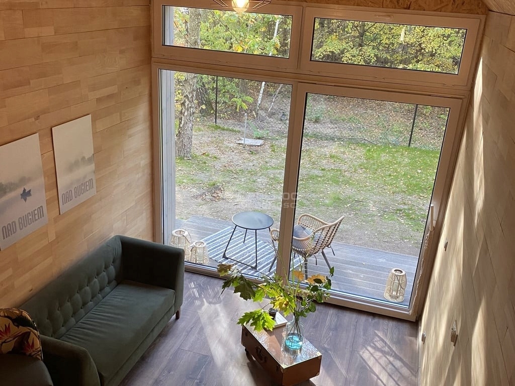 -przytulny salon z bezpośrednim wyjściem na uroczy taras (4m x 5m), gdzie można delektować się pięknymi widokami i organizować spotkania towarzyskie.