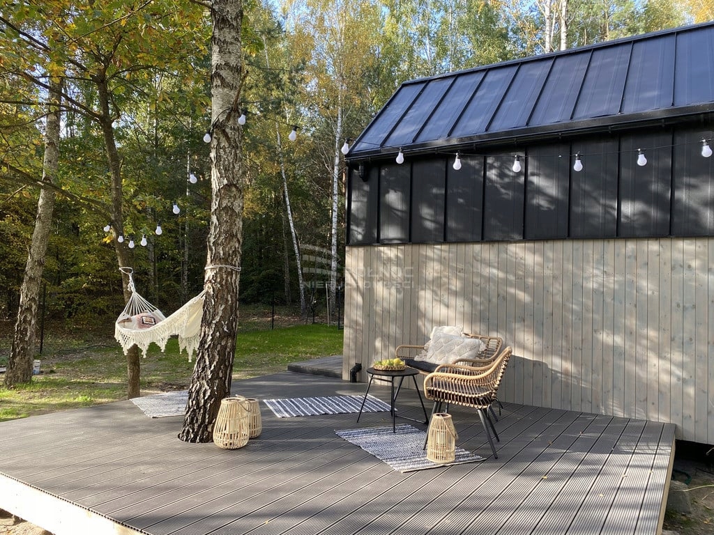 Ten wyjątkowy dom typu nowoczesna stodoła został zaprojektowany z myślą o komforcie i relaksie, stanowiąc idealne miejsce do wypoczynku.
