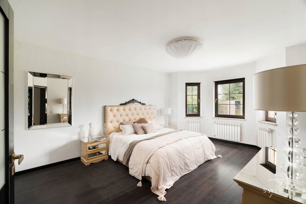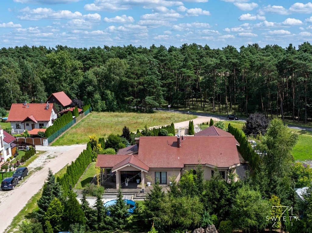 Otwarta połączona z salonem kuchnia w pełni umeblowana i wyposażona w niezbędny sprzęt AGD. W salonie jest wszystko, czego potrzebujesz do odpoczynku: wygodna kanapa, kominek oraz możliwość podłączenia TV i innych urządzeń multimedialnych, które zapewnią rozrywkę dla Ciebie i Twoich najbliższych. Z salonu wyjście na taras oraz zielony ogród. Tuż przy sypialni jest garderoba oraz wygodna łazienka z wanną. Dwa dodatkowe pokoje mogą pełnić funkcję sypialni, pokoju dziecka lub biura. W holu znajduje się duża szafa w zabudowie. Duża ilość okien zapewnia naturalne oświetlenie całej przestrzeni domu, a gdy zechcesz więcej prywatności wystarczy skorzystać z zewnętrznych rolet. Taras, to prawdziwy azyl, idealny dla osób ceniących spokój i bliskość natury. Jeżeli pracujesz zdalnie, być może taras stanie się Twoim ulubionym miejscem do pracy. Niewątpliwym atutem zielonej strefy w ogrodzie jest fińska sauna z olchy, która zapewni odprężenie. Czas spędzony w ogrodzie otoczonym piękną roślinnością zapewni relaksujący klimat i niezapomniane chwile z najbliższymi. W domu zainstalowany jest zmiękczacz wody oraz odkurzacz centralny. Okna wykonane z PCV z granitowymi parapetami, wyposażone w rolety zewnętrzne.
