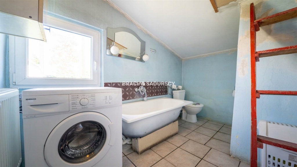 Wyposażenie łazienki: WC, wanna, umywalka, pralka |