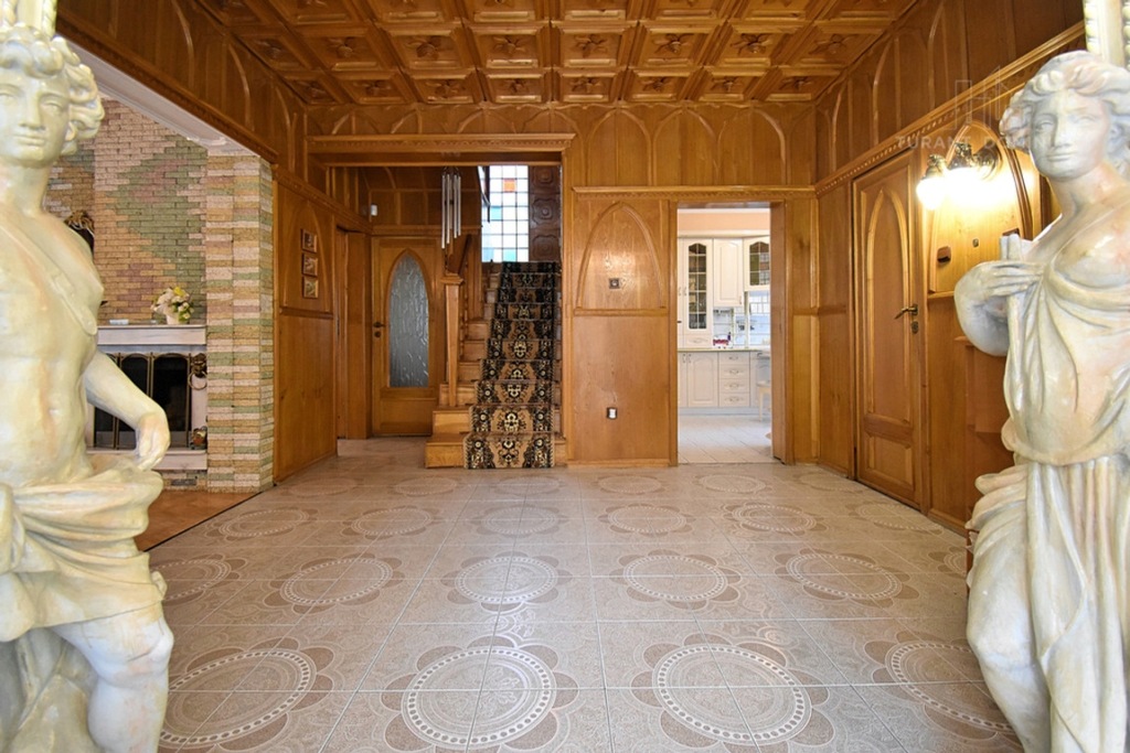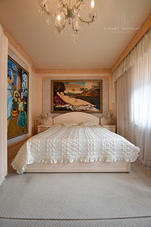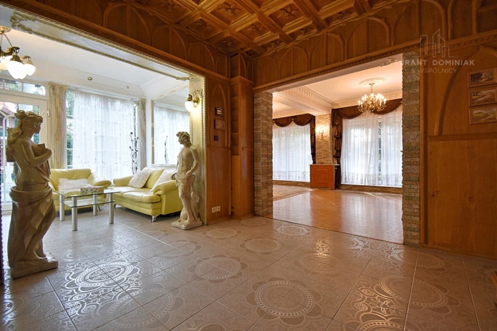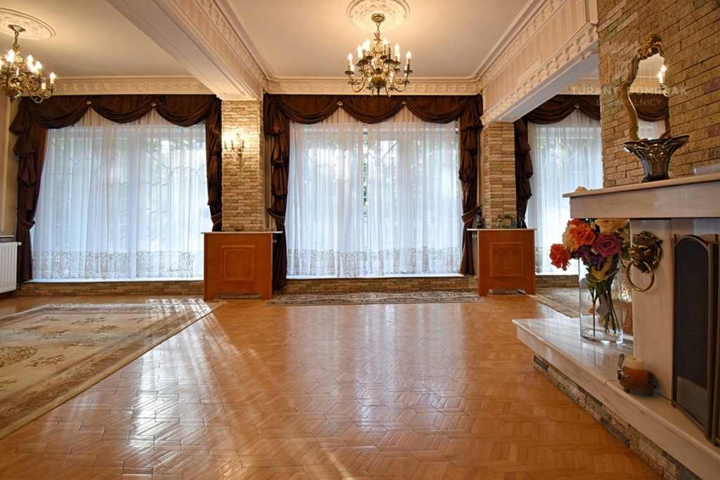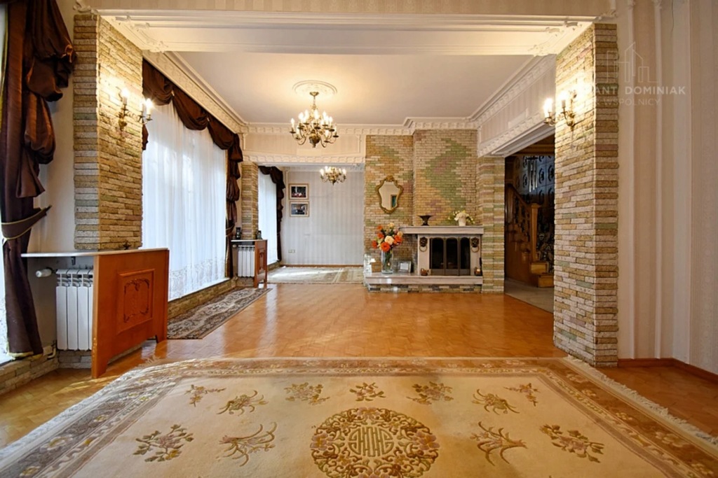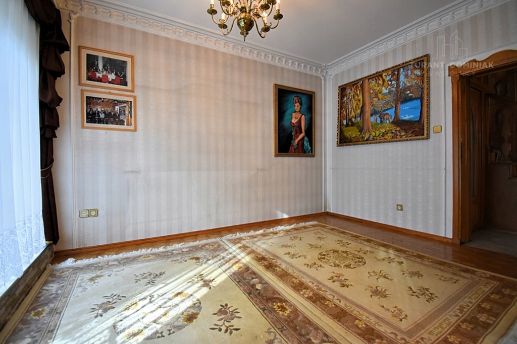 - Liczba pokoi: przestronny salon z kominkiem, trzy sypialnie na I piętrze, jeden pokój na poddaszu oraz dwa pomieszczenia zagospodarowana w części piwnicznej na między innymi salę z bilardem.