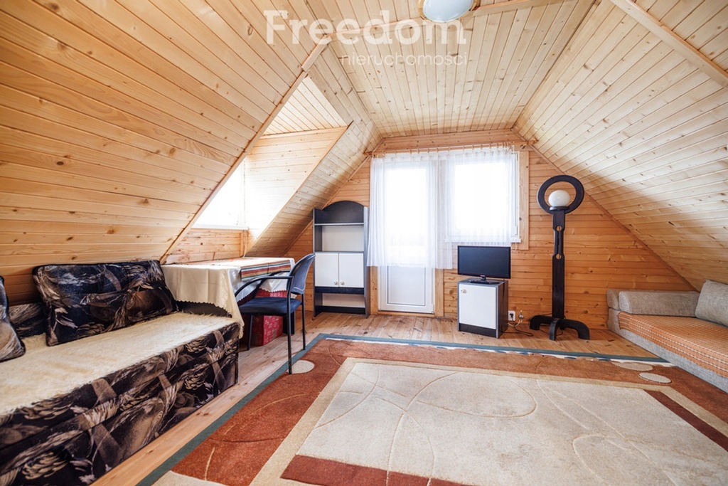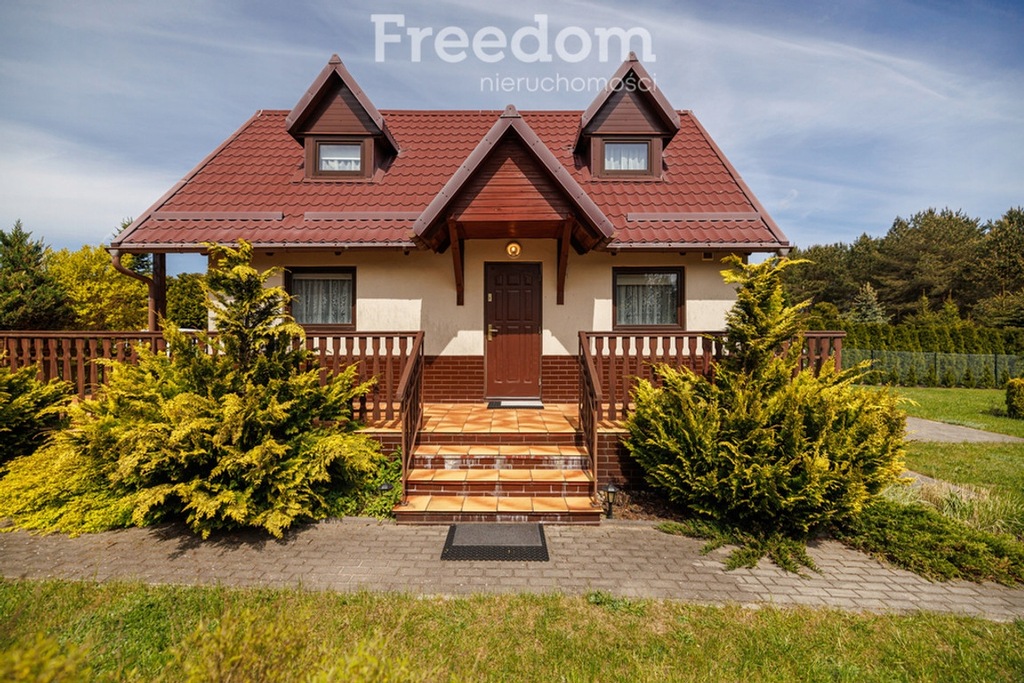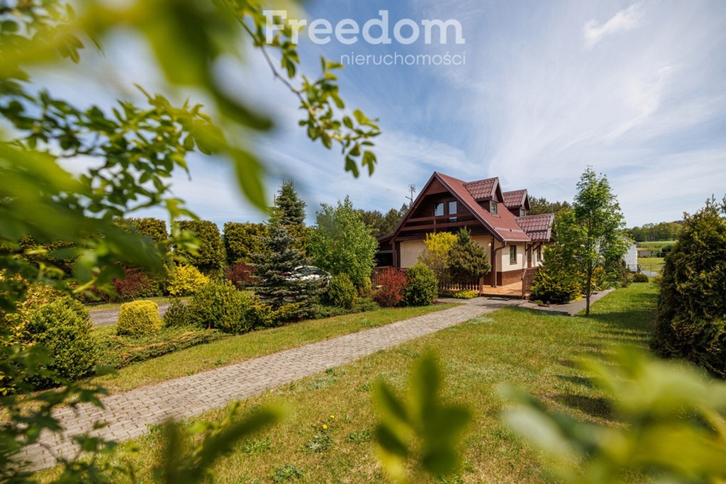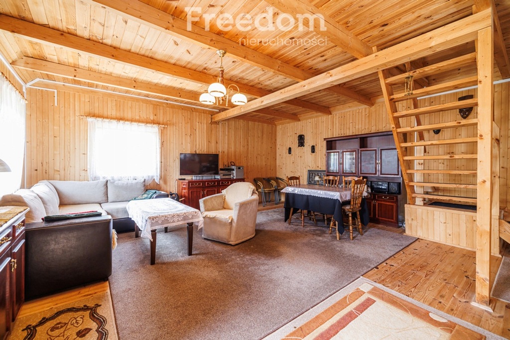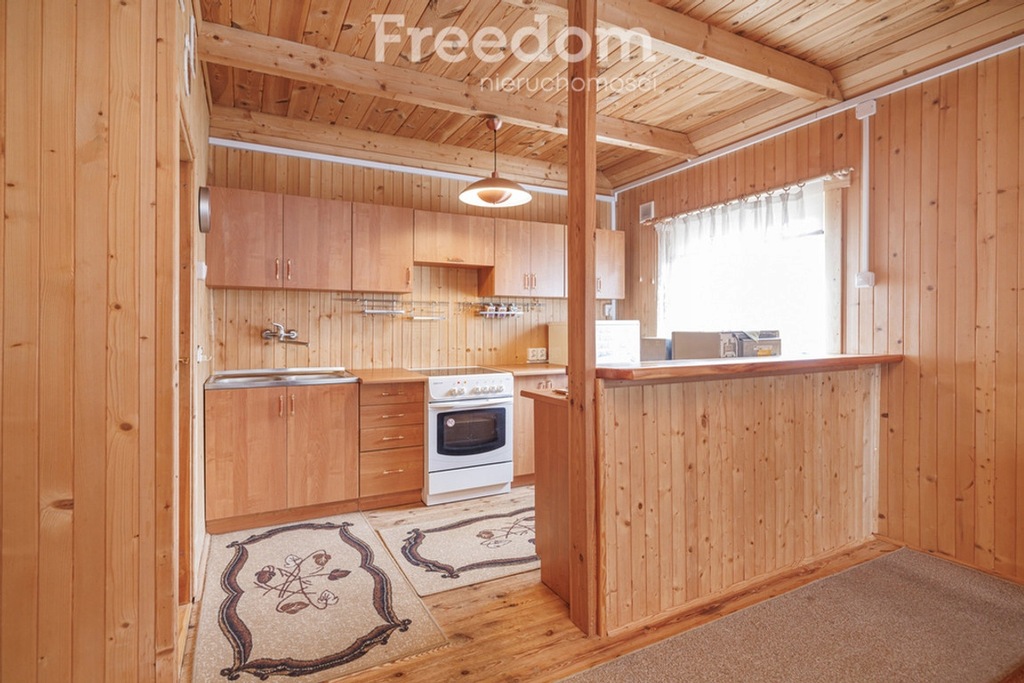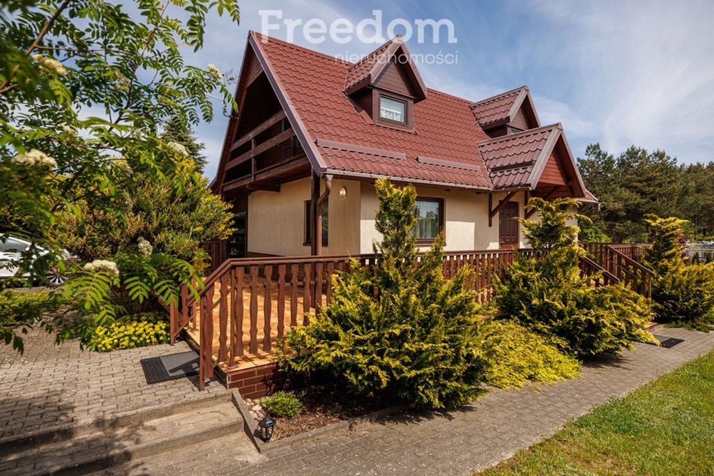 Dom w stylu drewnianym, urzekający swoim rustykalnym urokiem, zbudowany z naturalnych materiałów, idealnie wpisuje się w otaczającą przyrodę. Jego ciepła atmosfera jest zaproszeniem do wewnętrznego spokoju i odpoczynku. Nieruchomość o powierzchni całkowitej 92,8 m2.