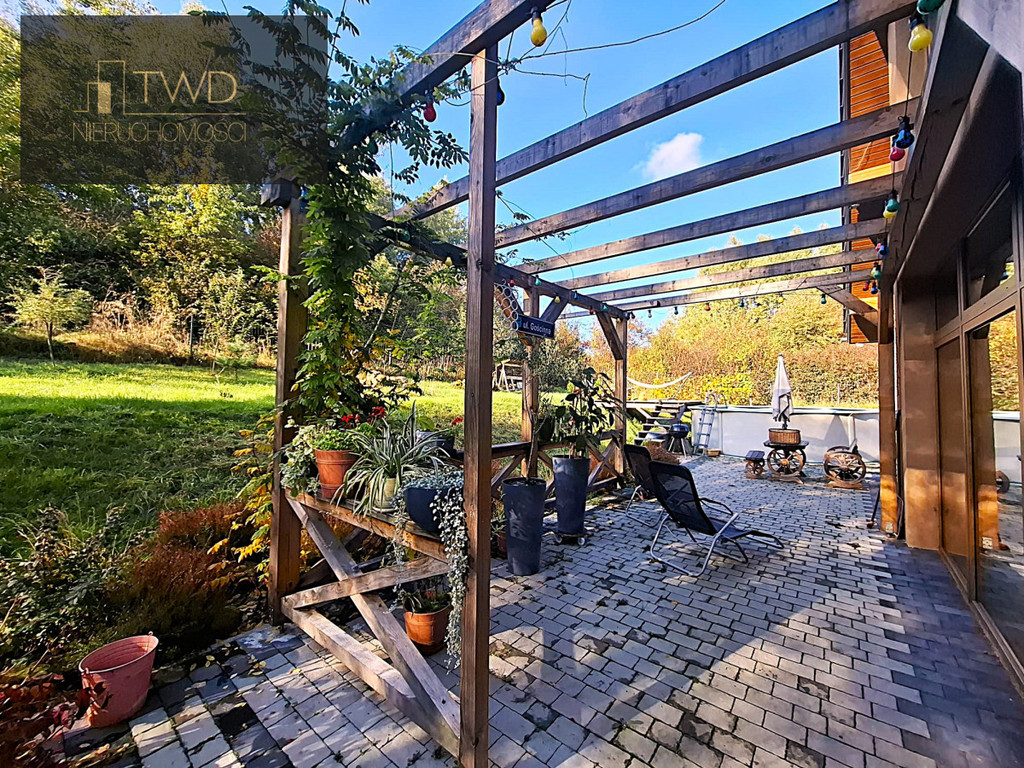 - Taras zabudowany pergolą - idealna przestrzeń na odpoczynek na świeżym powietrzu o każdej porze roku