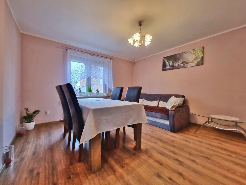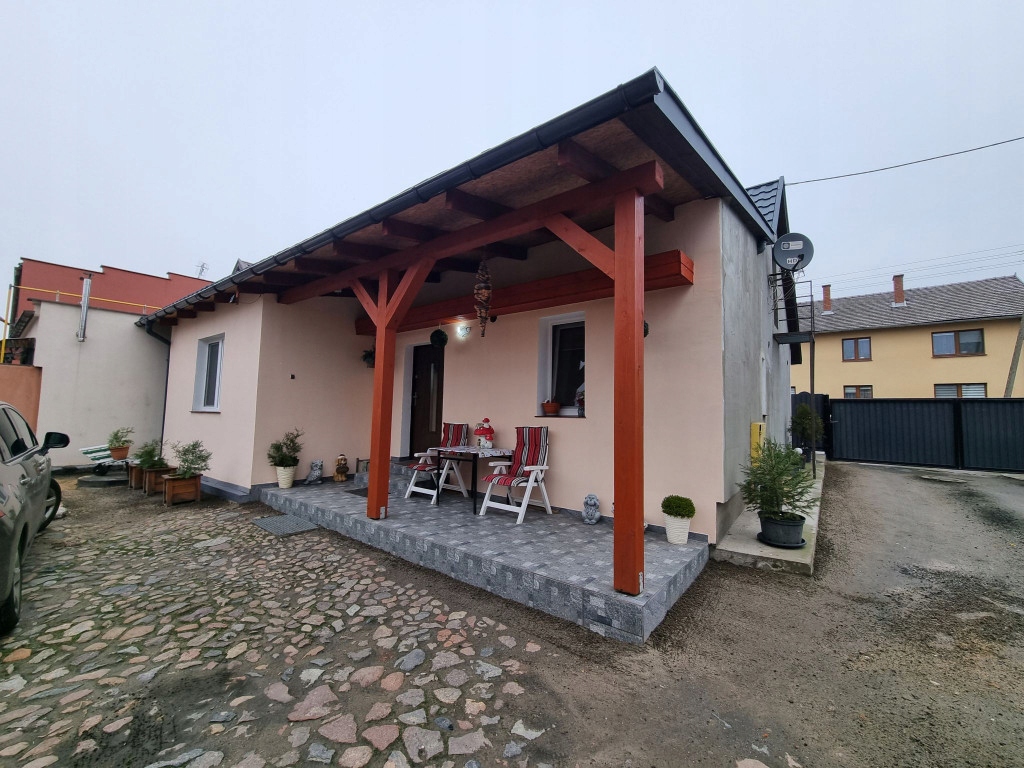 Powierzchnia mieszkalna to około 100m2 .Na parterze znajduje się: duża jasna kuchnia, pokój dzienny , przedsionek z wyjściem na duży 20-metrowy zadaszony taras , 3 sypialnie które pomieszczą całą rodzinę i gości, łazienka z WC. Niewątpliwym atutem domu jest możliwość zaadoptowania już częściowo przygotowanego poddasza ,na mieszkanie lub dodatkowe pokoje , do którego prowadzi osobne wejście, więc można tam stworzyć oddzielne mieszkanie idealne np. pod agroturystykę.